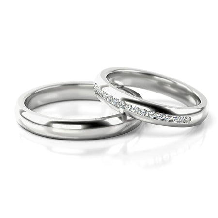 Ruční výroba v klenotnické dílně Gremari, jedinečné klasické snubní prsteny z 14karátového (585) bílého zlata jsou nadčasovým symbolem věčné lásky. Prsten, široký 3,5 mm a tlustý 1,6 mm, vypadá na ruce krásně, je nenápadný a skvěle ladí s dalšími šperky, jako jsou náramky nebo prsteny s drahými kameny, či zásnubní prsten.