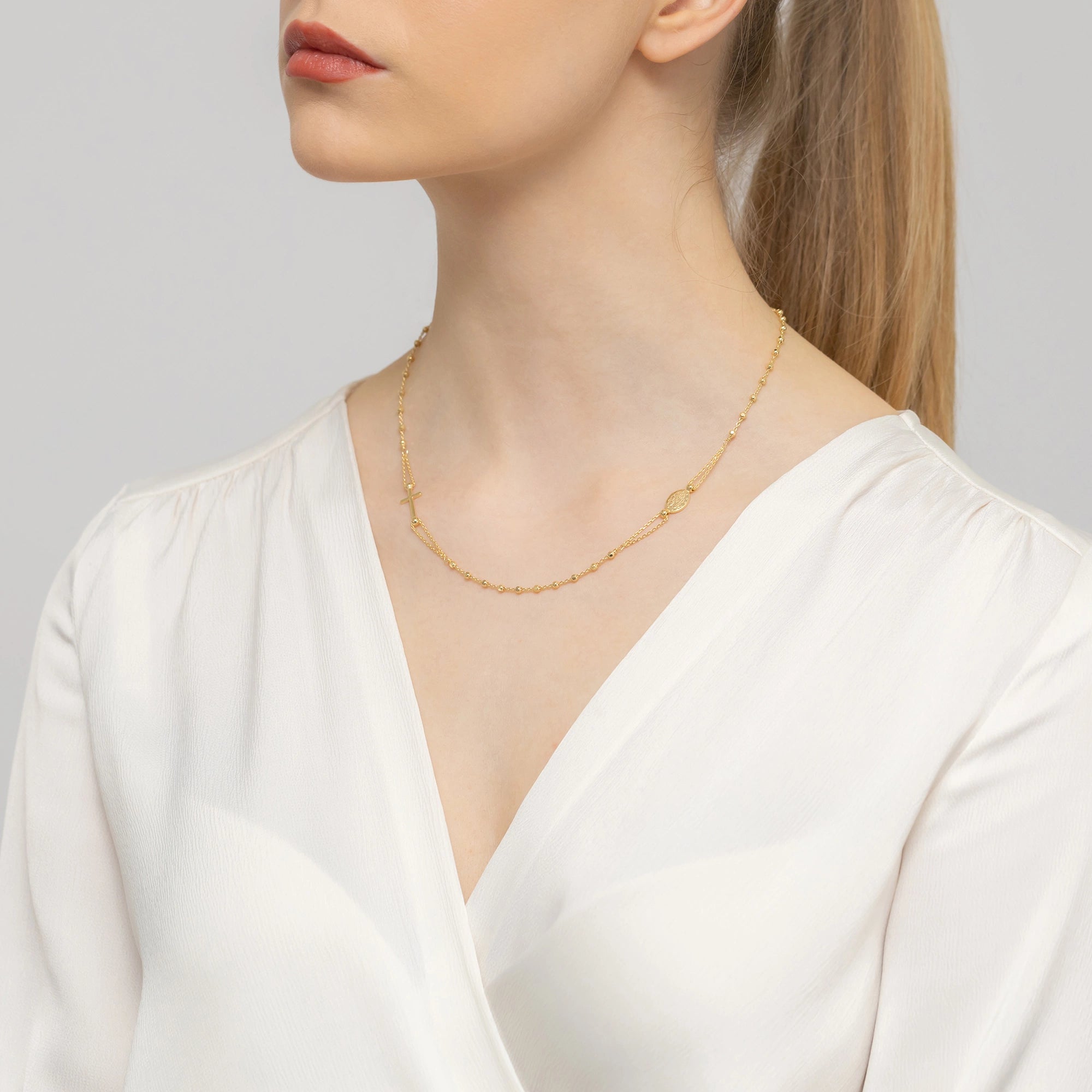 Náhrdelník je pokryt vrstvou zlata, která mu dodává luxusní a odolný lesk.