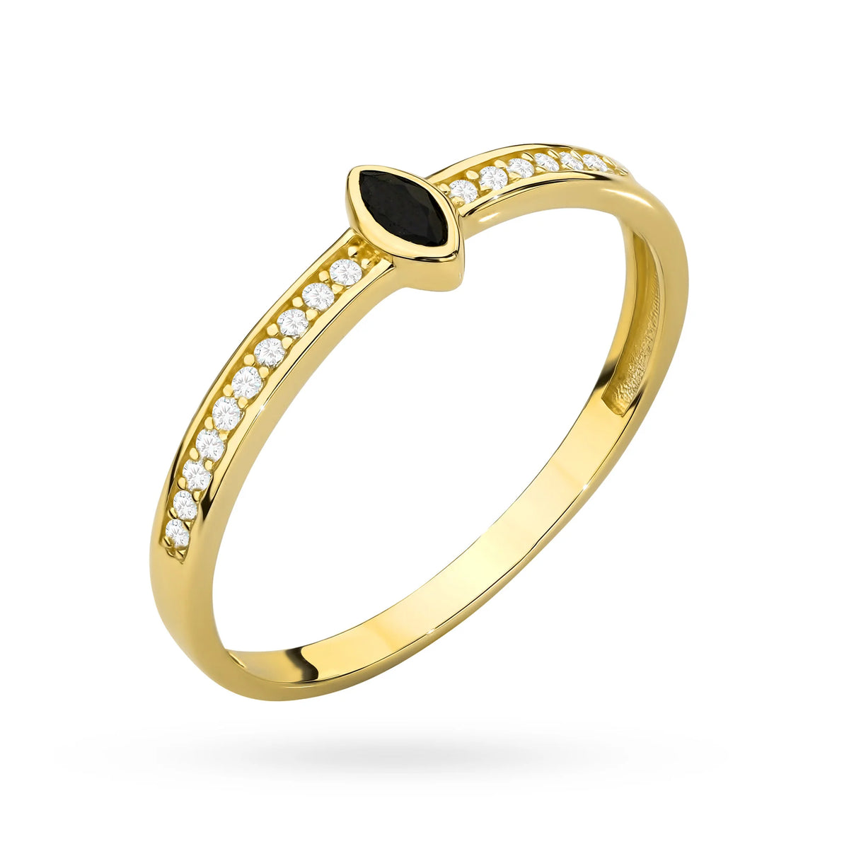Prsten zlatá kapka s černým kamenem a zirkonií