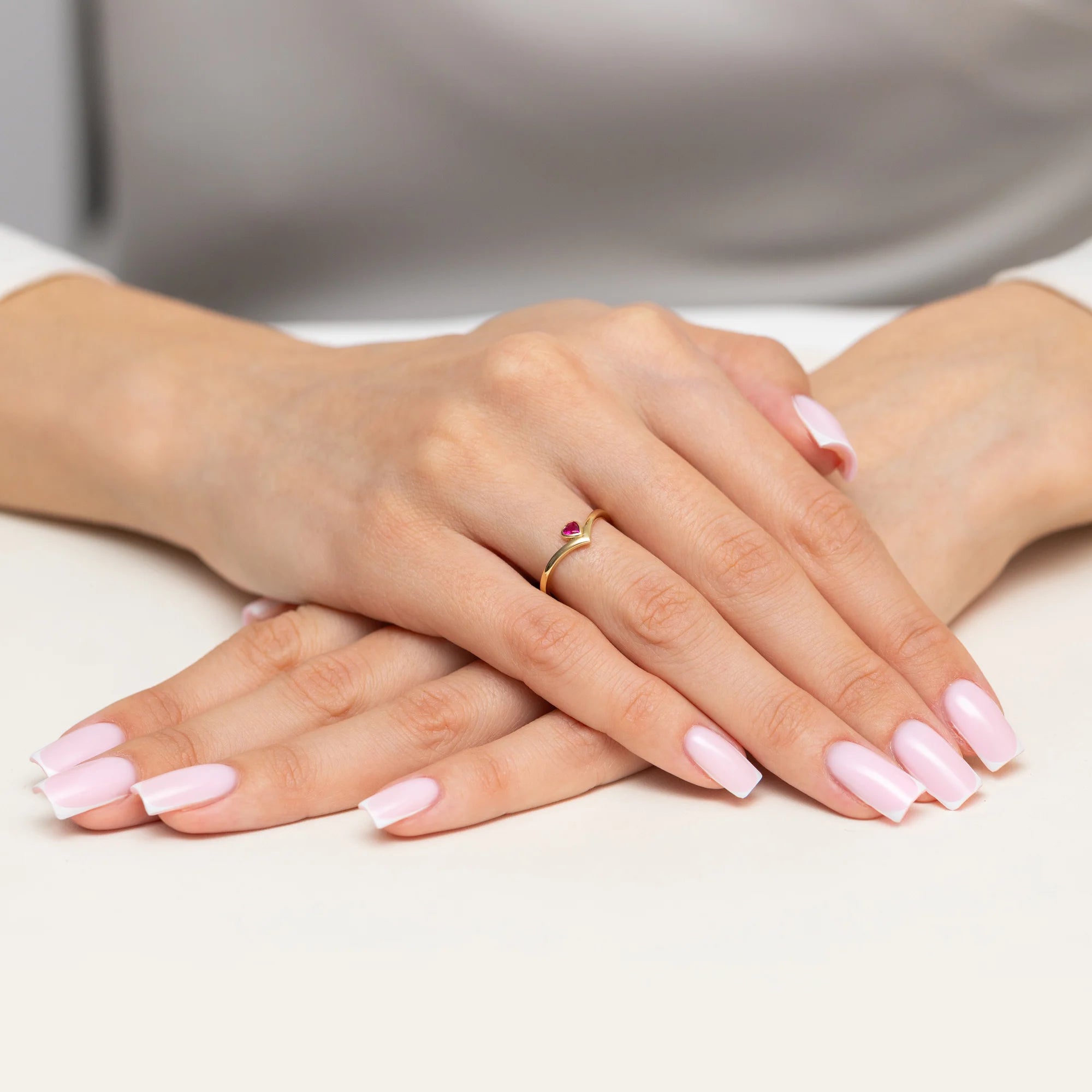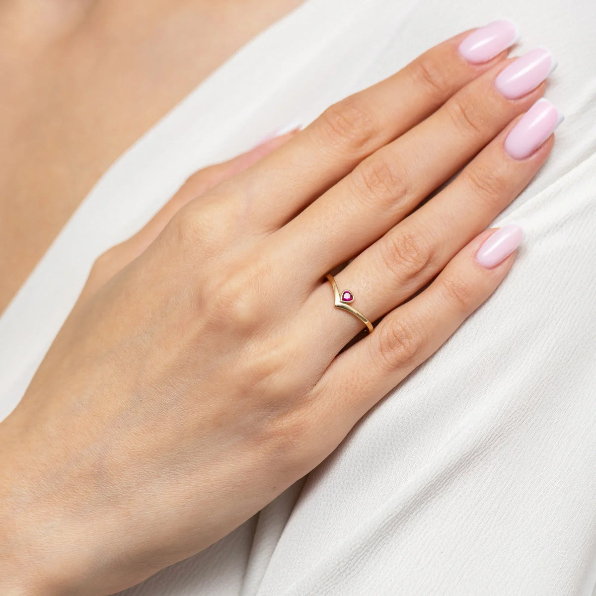 Prsten se zlatým srdcem a rubínovou zirkonií