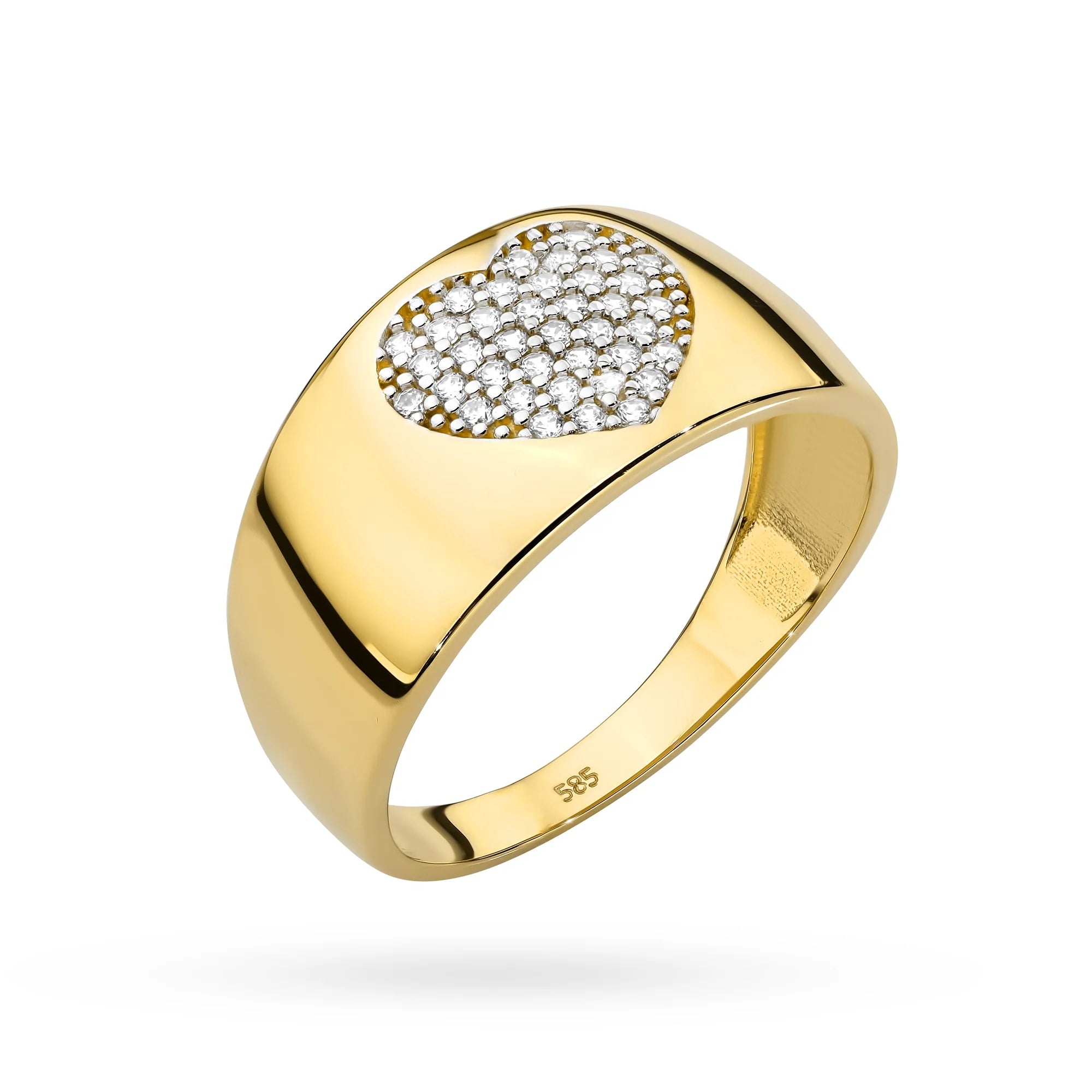 Zlatý prsten srdce zdobený zirkonií