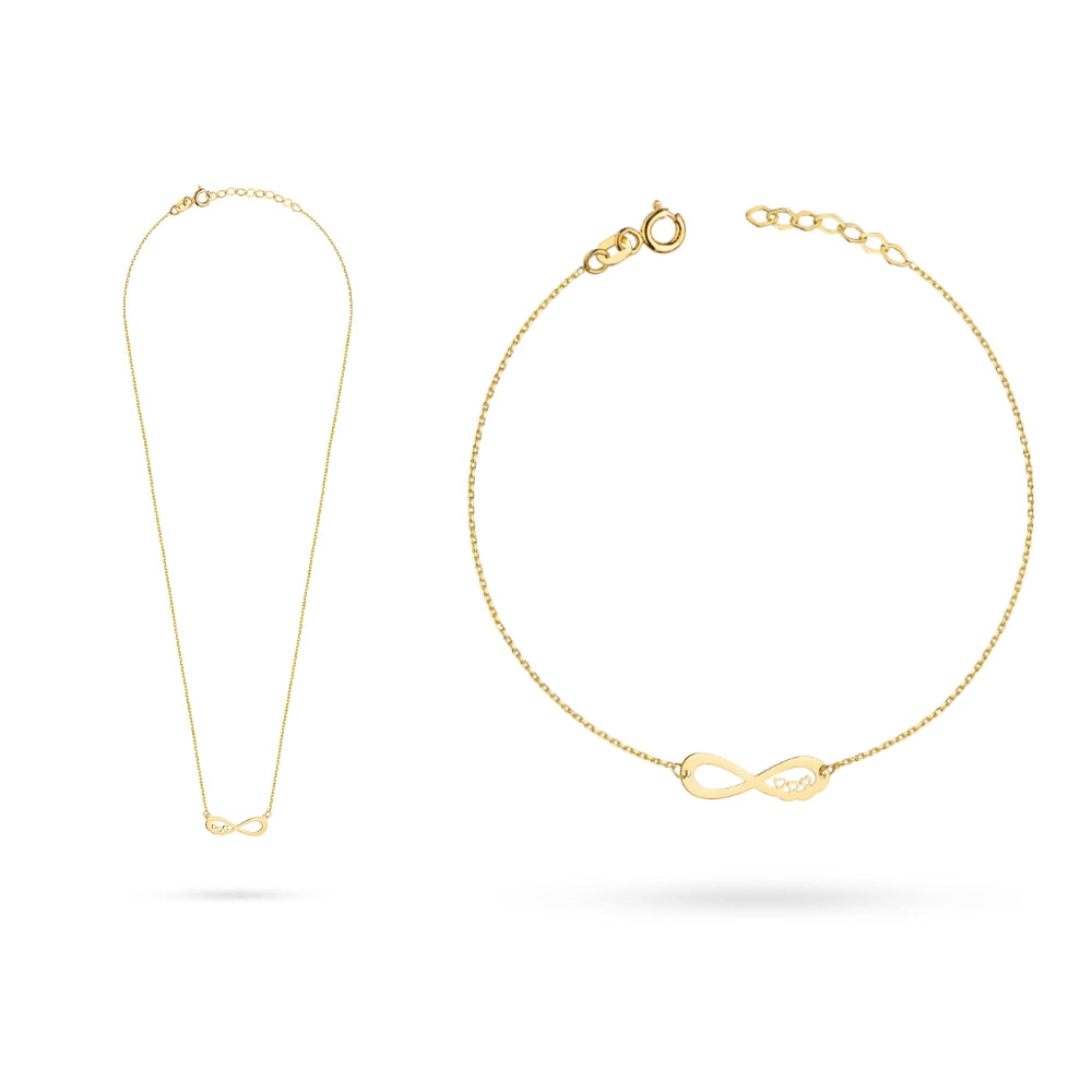 Sada zlatých šperků – náhrdelník a náramek s nekonečnem a srdcem