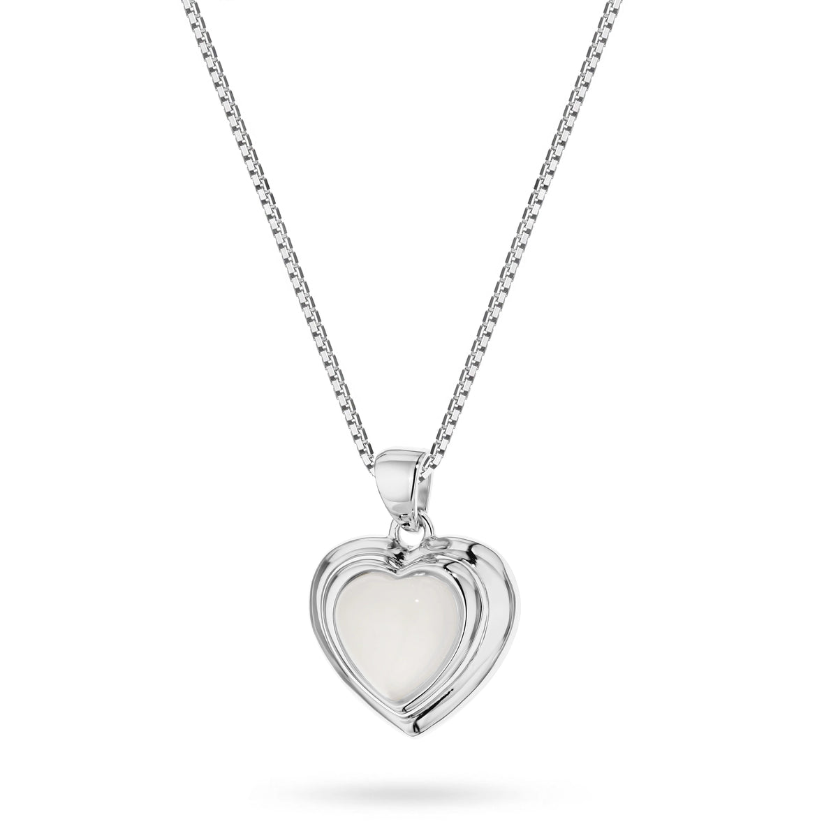 Stříbrný náhrdelník s přívěskem ve tvaru srdce a bílým achátem