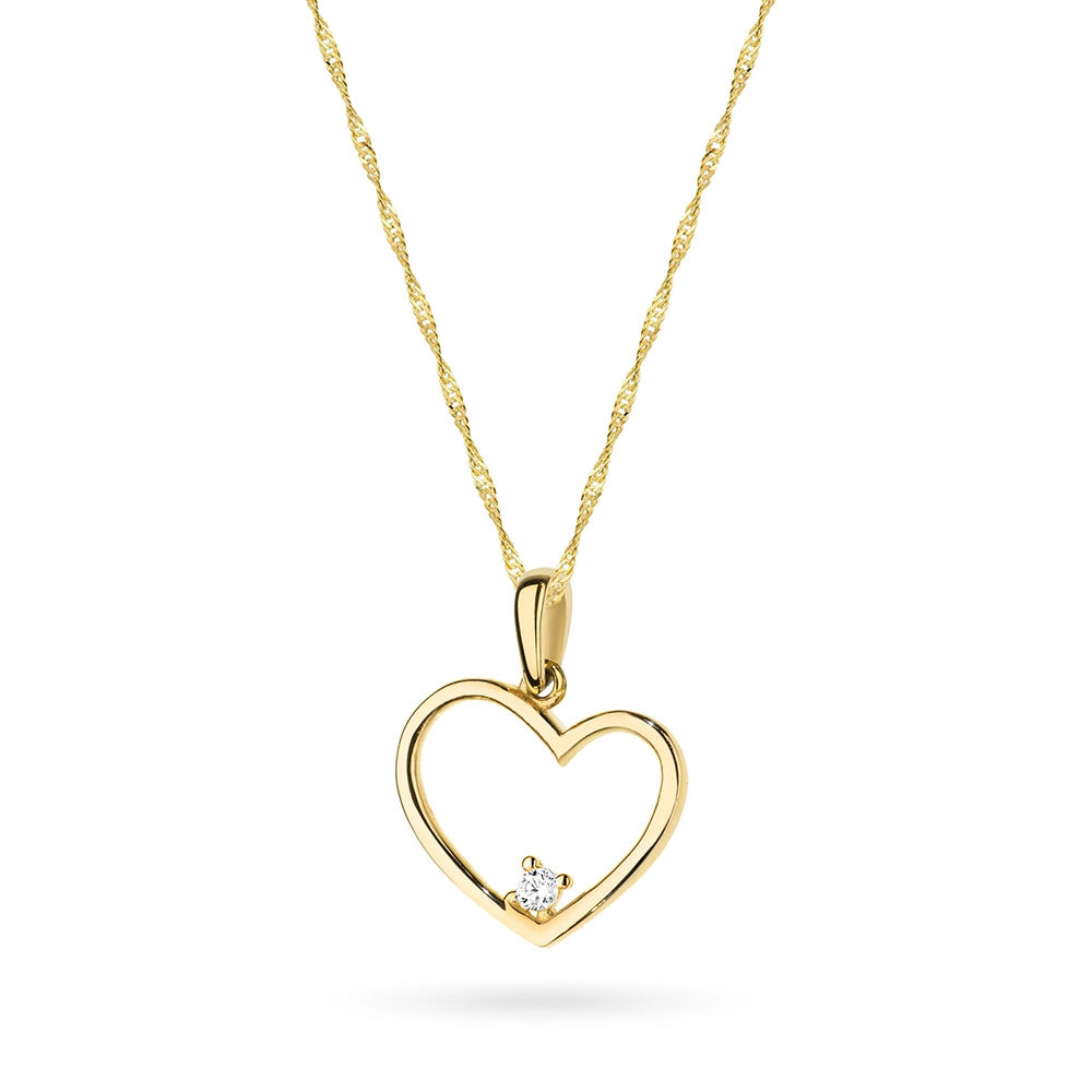 Zlatý náhrdelník s asymetrickým přívěskem ve tvaru srdce a kubickou zirkonií