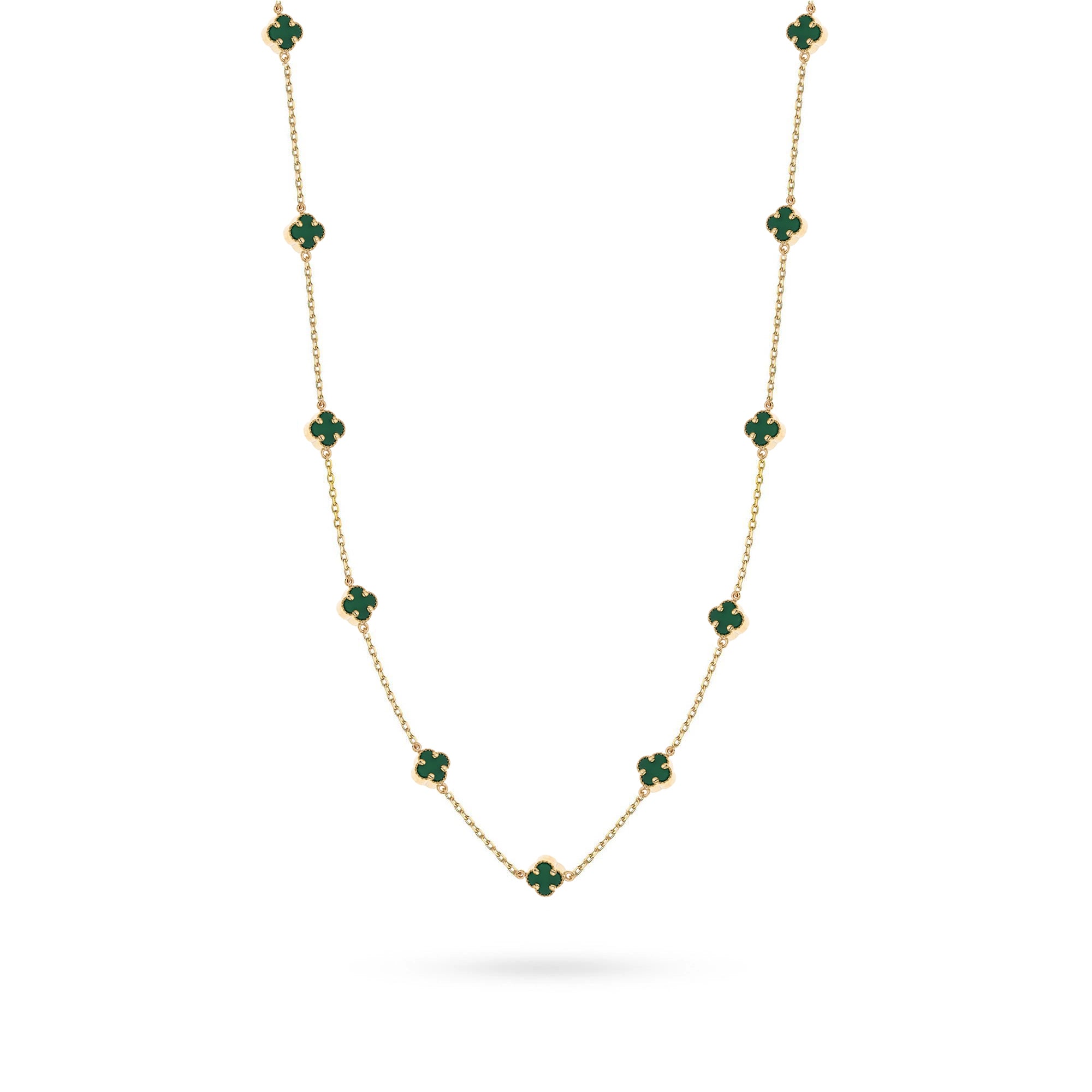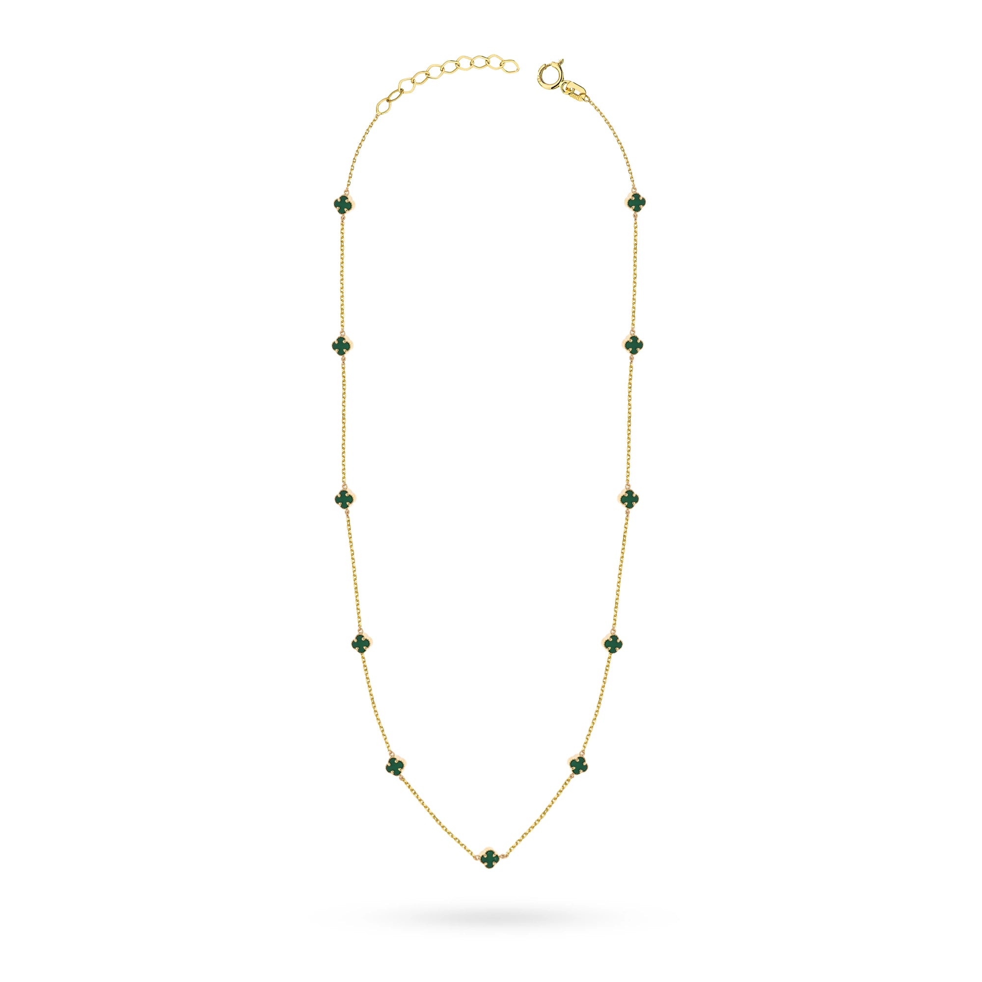 Zlatý náhrdelník se zelenými čtyřlístky štěstí