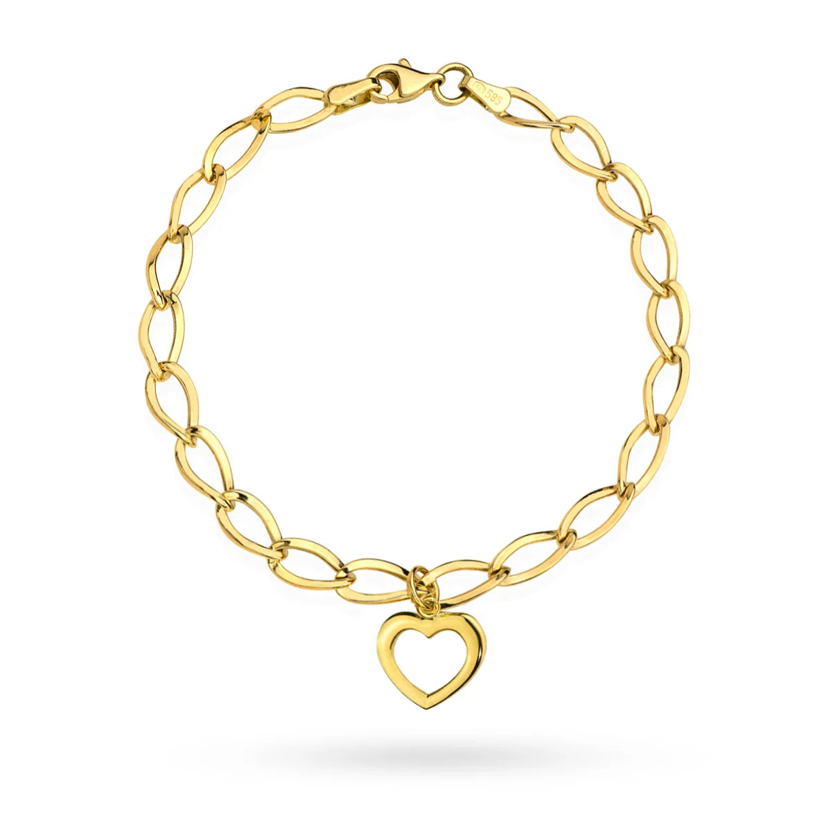 Zlatý náramek se širokými oválnými články a přívěskem ve tvaru srdce