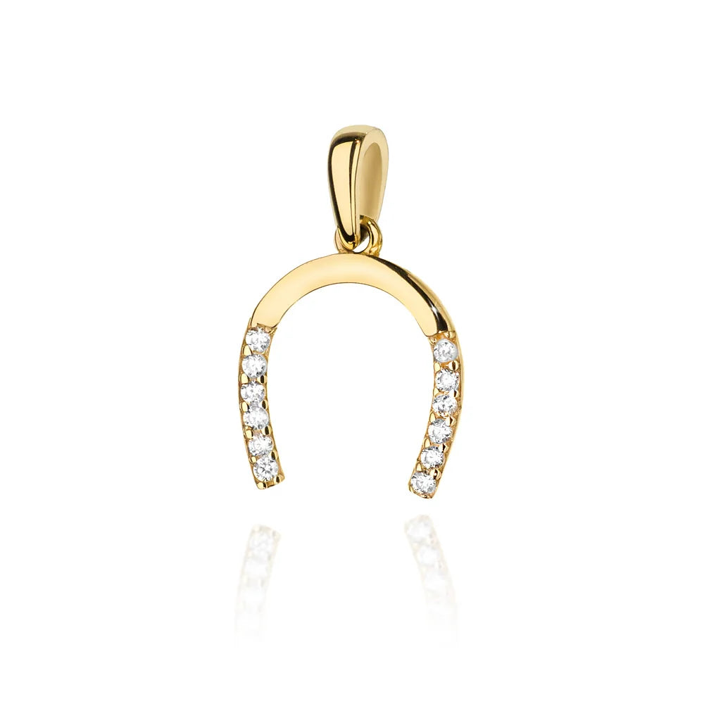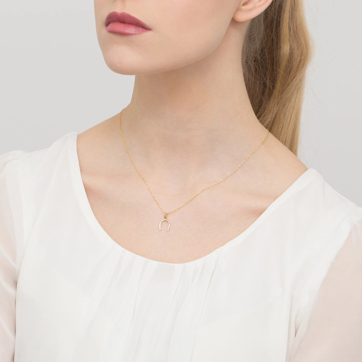 Goldkette mit Glückshufeisen-Anhänger aus Zirkonia an Ankerkette