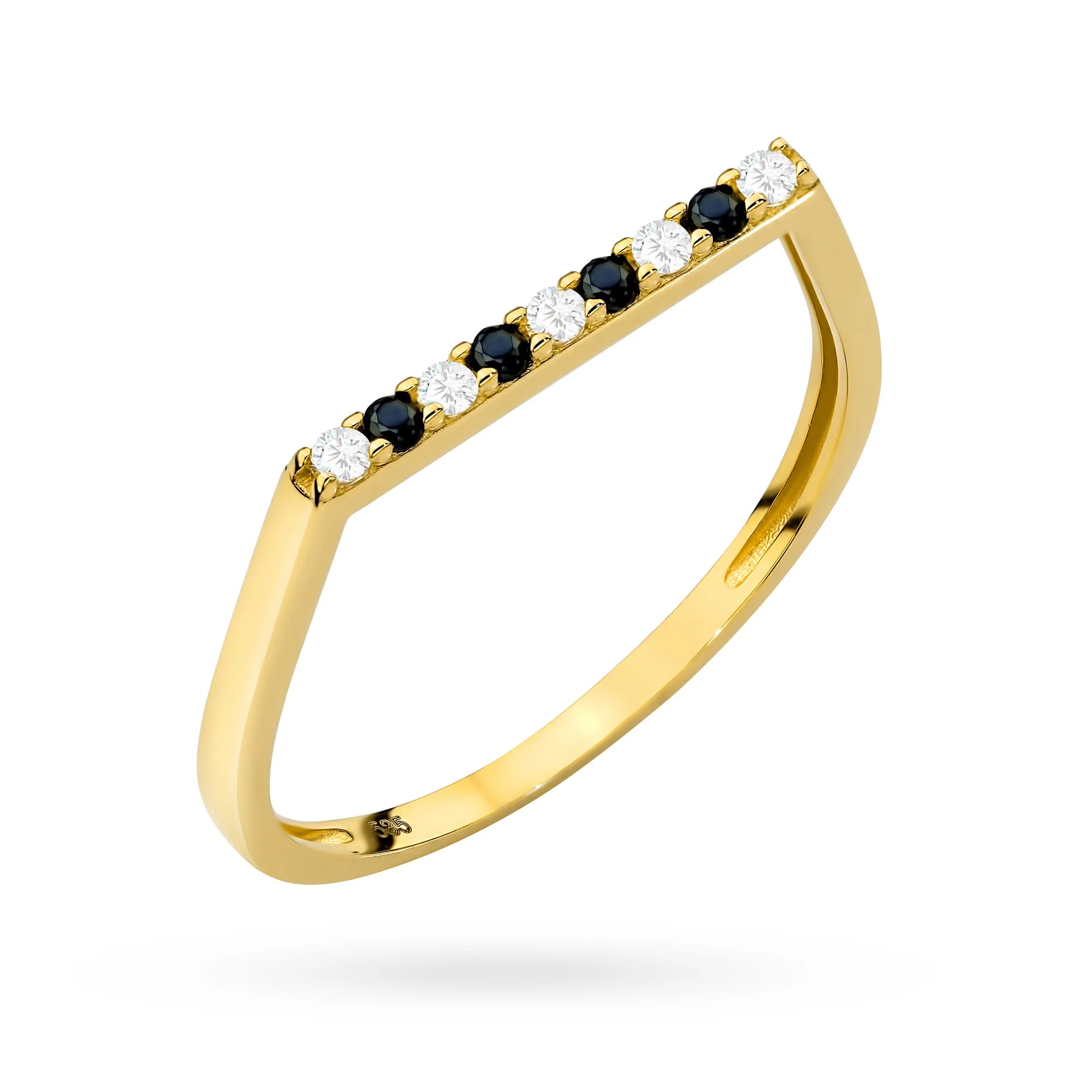 Goldring mit schwarzem und weißem Zirkonia