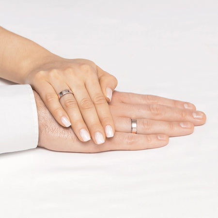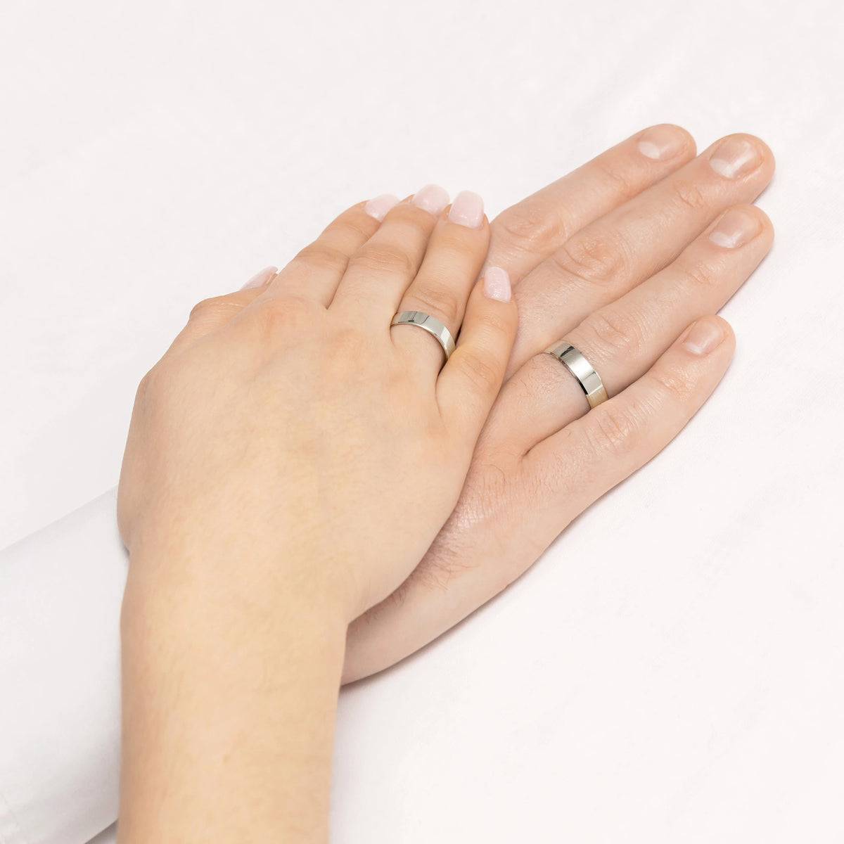 Klassische Flach Abgeschrägt Gold Eheringe 5 und 6 mm Handgefertigt in der Gremari Schmuckwerkstatt, einzigartige klassische Eheringe aus 14K (585) Gold, sind ein zeitloses Symbol ewiger Liebe. Der Ring, 5 und 6 mm breit und 1,2 mm dick, sieht an der Hand wunderschön aus, ist dezent und passt perfekt zu anderen Schmuckstücken wie Armbändern oder Ringen mit Edelsteinen oder einem Verlobungsring. Wir bieten Gold Eheringe in drei edlen Farbtönen an: klassisches Gelbgold begeistert mit seinem warmen Glanz und ist ein zeitloses Symbol der Ehe; elegantes Weißgold hat einen modernen, kühlen, spiegelähnlichen Glanz, der an Platin erinnert; während romantisches Roségold mit seinem dezenten, warmen und modischen Farbton verzaubert. Jedes Paar Eheringe wird in unserer Werkstatt nach Kundenwunsch gefertigt. Es ist möglich, sie durch eine Gravur mit eigenem Text weiter zu personalisieren. Wir verpacken die Eheringe in einer eleganten Schmuckschatulle, die zum Charakter Ihrer Zeremonie passt.
