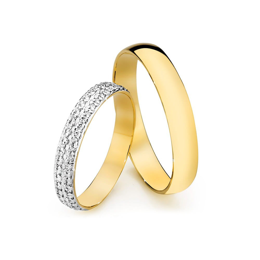 Handgefertigt in der Gremari Schmuckwerkstatt. Einzigartige klassische Trauringe aus 14K (585) Gold sind ein zeitloses Symbol ewiger Liebe. Der Ring, 3,5 und 4 mm breit, sieht an der Hand wunderschön aus, ist dezent und passt perfekt zu anderen Schmuckstücken wie Armbändern oder Ringen mit Edelsteinen oder einem Verlobungsring. Der Damenring ist mit natürlichen Diamanten verziert, Steinen, die sich über Millionen von Jahren tief in der Erde gebildet haben und eine ewige Liebe symbolisieren, die allem standhält. Die Echtheit der Diamanten wird durch ein Zertifikat bestätigt, das Ihrem Kauf beiliegt. Jedes Paar Trauringe wird in unserer Werkstatt nach Kundenwunsch gefertigt. Es ist möglich, sie durch eine Gravur mit Ihrem eigenen Text weiter zu personalisieren. Wir verpacken die Trauringe in einer eleganten Schmuckschatulle, die zum Charakter Ihrer Zeremonie passt.