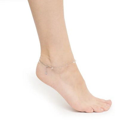 Silber Fußkettchen mit Zirkonia - Kreis-Motiv