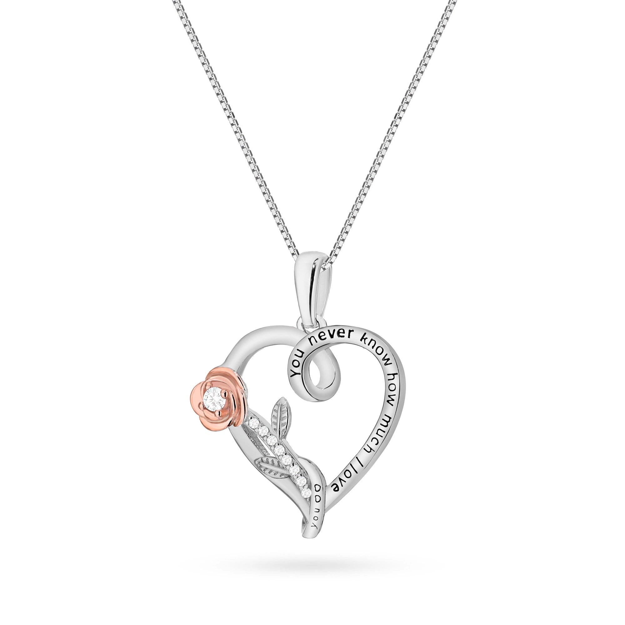 Silberkette mit Rosen-Herz-Anhänger und Zirkonia zur Gravur