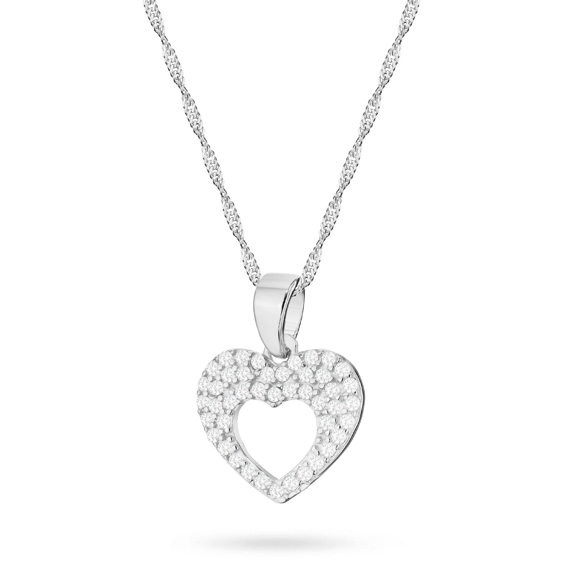 Silberkette mit Herz-in-Herz-Anhänger und Zirkonia
