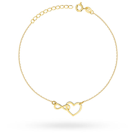 Vergoldetes Halsketten- und Armbandset — verschlungene Herz- und Unendlichkeitssymbole