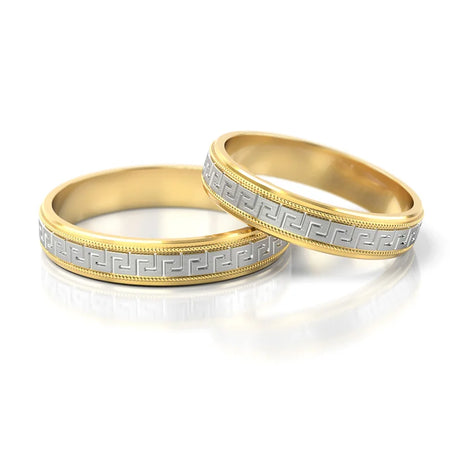 Handgefertigt in der Gremari Schmuckwerkstatt, sind einzigartige klassische Eheringe aus 14K (585) Kombination aus Weiß- und Gelbgold ein zeitloses Symbol ewiger Liebe. Der Ring, 4 mm breit und 1,3 mm dick, sieht an der Hand wunderschön aus, ist dezent und passt perfekt zu anderen Schmuckstücken wie Armbändern oder Ringen mit Edelsteinen oder einem Verlobungsring.