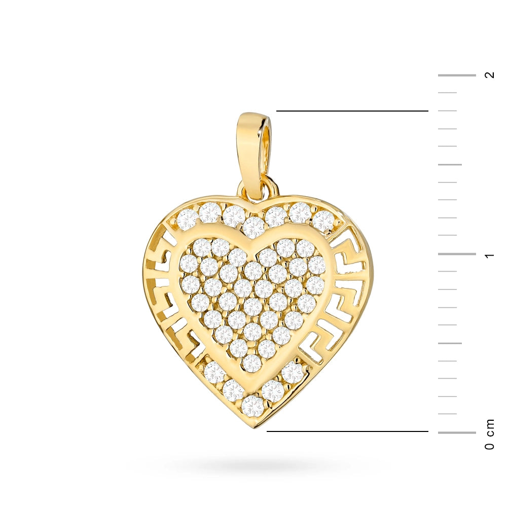 Collier en or avec pendentif cœur et zircone cubique – Motif grec