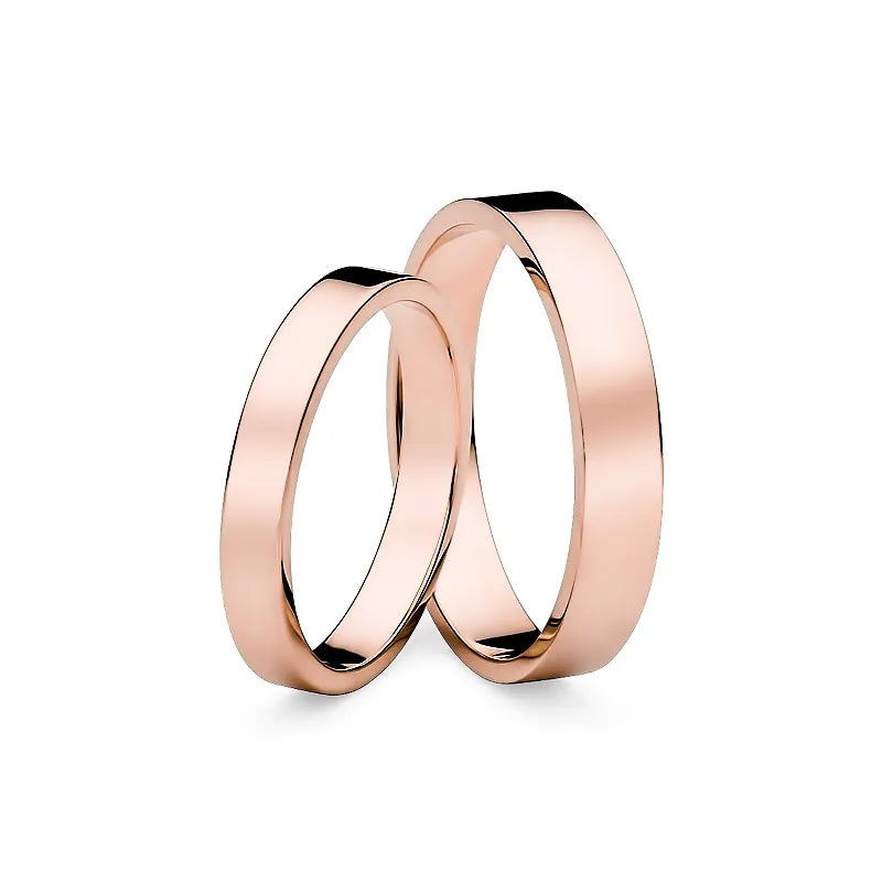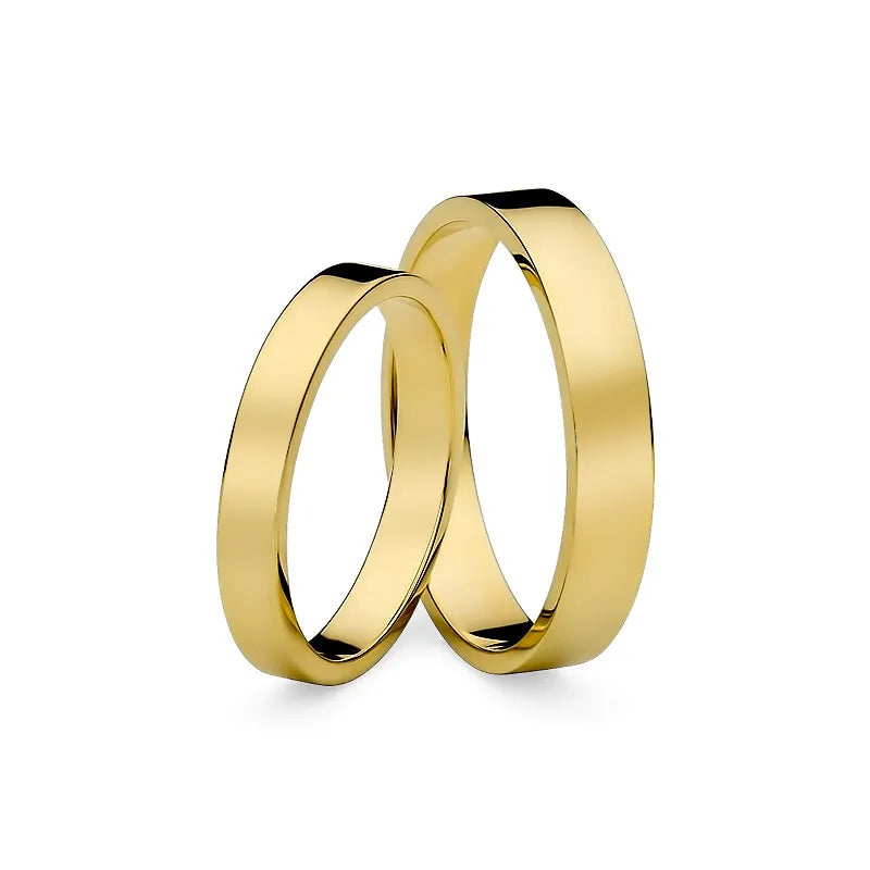 Classic Flat Gold Wedding Bands Rings 3 and 4 mm Handcrafted in the Gremari jewelry workshop, unique classic wedding rings made of 14K (585) gold, are a timeless symbol of everlasting love. The ring, 3 and 4mm wide and 1.2mm thick, looks beautiful on the hand, is subtle, and goes perfectly with other jewelry pieces, such as bracelets or rings with precious stones, or an engagement ring.We offer gold wedding band in three precious shades: classic yellow gold delights with its warm glow and is a timeless symbol of marriage; elegant white gold has a modern, cool, mirror-like shine reminiscent of platinum; while romantic rose gold captivates with its subtle, warm, and fashionable hue. Each pair of wedding rings is made in our workshop according to the customer's order. It is possible to personalise them further by adding an engraving with your own text. We pack the wedding rings in an elegant jewellery box, matching the character of your ceremony.