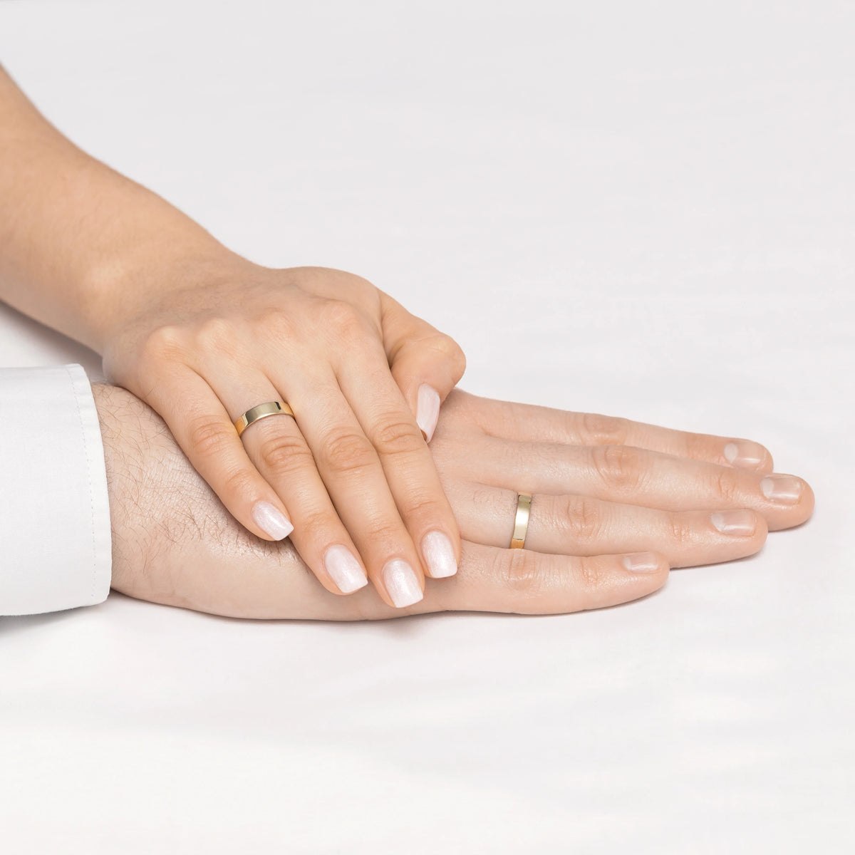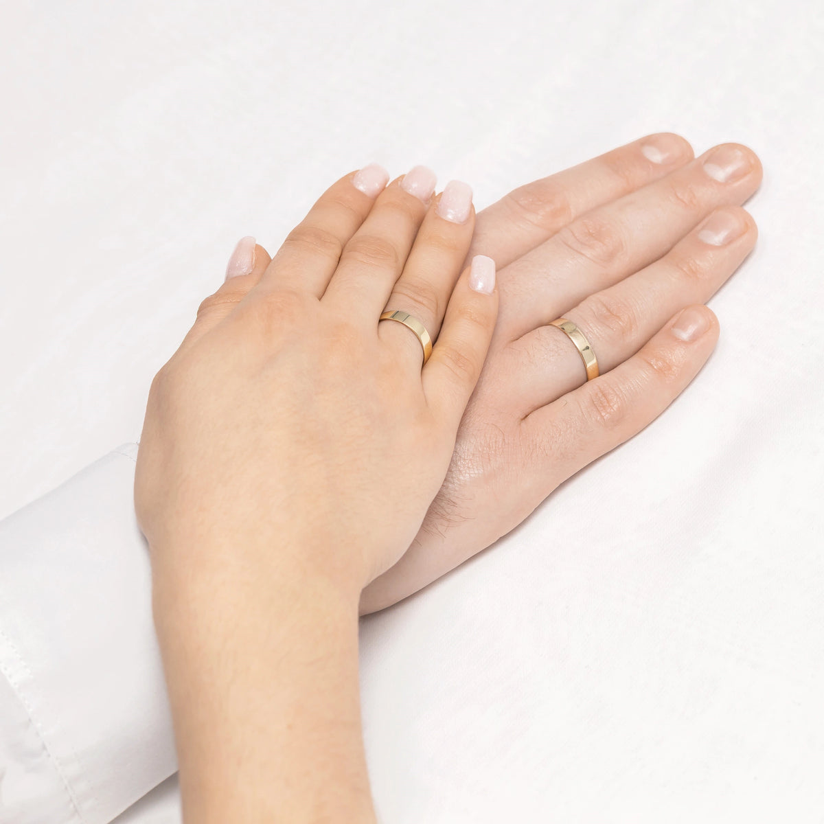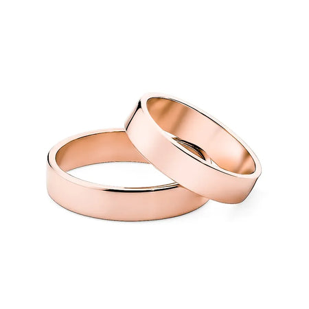 Classic Flat Gold Wedding Bands Rings 4mm Handcrafted in the Gremari jewelry workshop, unique classic wedding rings made of 14K (585) gold, are a timeless symbol of everlasting love. The ring, 4mm wide and 1.2mm thick, looks beautiful on the hand, is subtle, and goes perfectly with other jewelry pieces, such as bracelets or rings with precious stones, or an engagement ring.We offer gold wedding band in three precious shades: classic yellow gold delights with its warm glow and is a timeless symbol of marriage; elegant white gold has a modern, cool, mirror-like shine reminiscent of platinum; while romantic rose gold captivates with its subtle, warm, and fashionable hue. Each pair of wedding rings is made in our workshop according to the customer's order. It is possible to personalise them further by adding an engraving with your own text. We pack the wedding rings in an elegant jewellery box, matching the character of your ceremony.