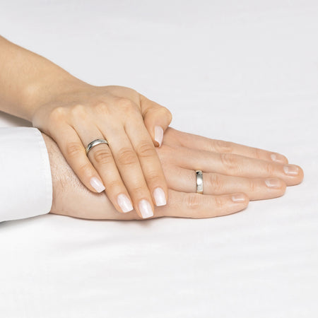 Handcrafted in the Gremari jewelry workshop, unique classic wedding rings made of 14K (585) gold, are a timeless symbol of everlasting love. The ring, 3 and 4mm wide and 1.2mm thick, looks beautiful on the hand, is subtle, and goes perfectly with other jewelry pieces, such as bracelets or rings with precious stones, or an engagement ring.We offer gold wedding band in three precious shades: classic yellow gold delights with its warm glow and is a timeless symbol of marriage; elegant white gold has a modern, cool, mirror-like shine reminiscent of platinum; while romantic rose gold captivates with its subtle, warm, and fashionable hue. Each pair of wedding rings is made in our workshop according to the customer's order. It is possible to personalise them further by adding an engraving with your own text. We pack the wedding rings in an elegant jewellery box, matching the character of your ceremony.