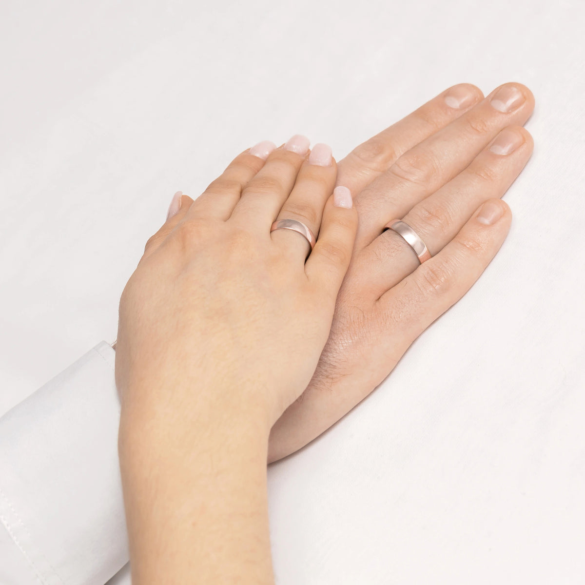Classic Slightly Rounded Gold Wedding Bands Rings 6mm Handcrafted in the Gremari jewelry workshop, unique classic wedding rings made of 14K (585) gold, are a timeless symbol of everlasting love. The ring, 6mm wide and 1.2mm thick, looks beautiful on the hand, is subtle, and goes perfectly with other jewelry pieces, such as bracelets or rings with precious stones, or an engagement ring. We offer gold wedding band in three precious shades: classic yellow gold delights with its warm glow and is a timeless symbol of marriage; elegant white gold has a modern, cool, mirror-like shine reminiscent of platinum; while romantic rose gold captivates with its subtle, warm, and fashionable hue. Each pair of wedding rings is made in our workshop according to the customer's order. It is possible to personalise them further by adding an engraving with your own text. We pack the wedding rings in an elegant jewellery box, matching the character of your ceremony.