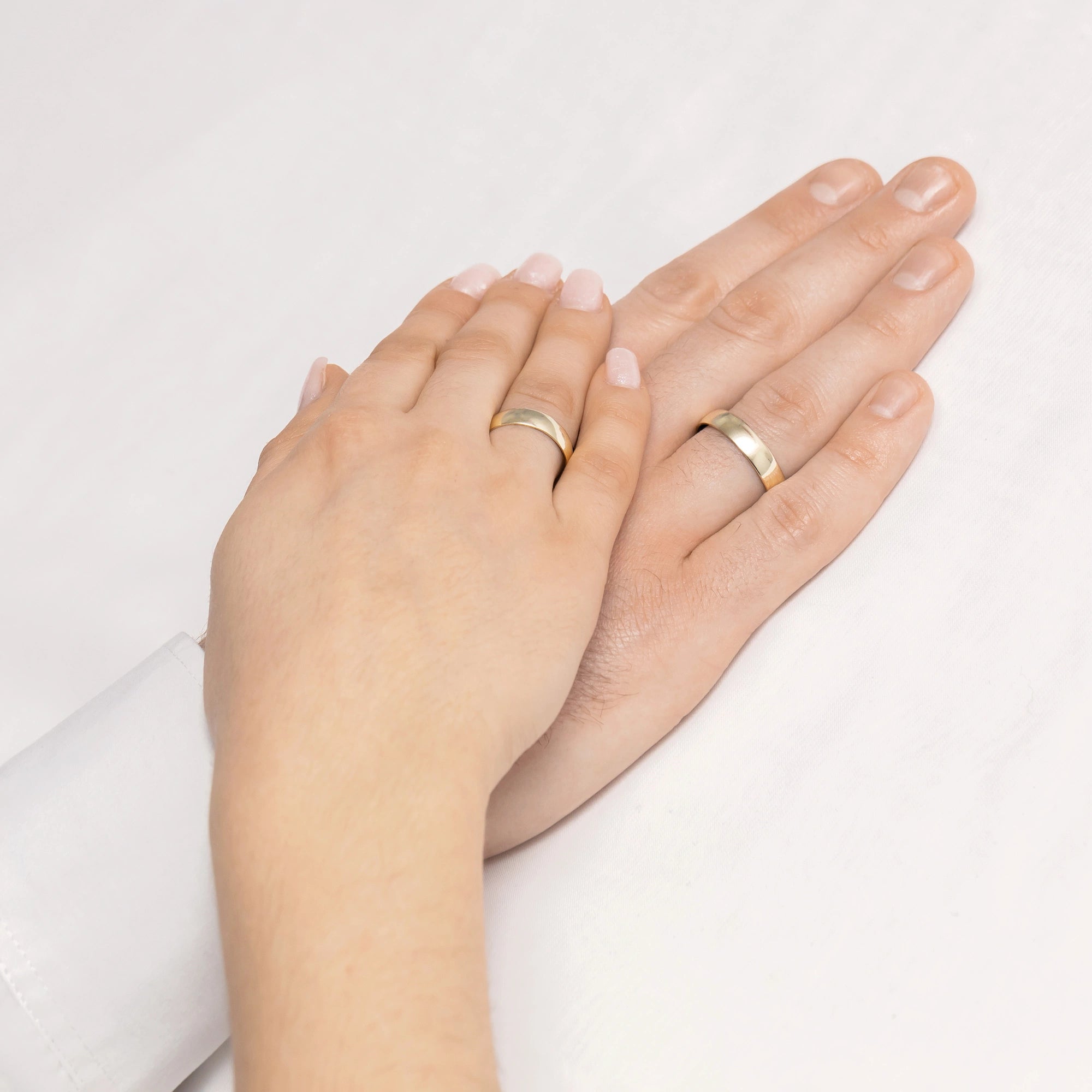 Classic Slightly Rounded Single Gold Wedding Band Ring 5mm Handcrafted in the Gremari jewelry workshop, unique single classic wedding band made of the highest quality 14-carat gold with a fineness of 585, is a timeless symbol of everlasting love. The ring, 5mm wide and 1.2mm thick, looks beautiful on the hand, is subtle, and goes perfectly with other jewelry pieces, such as bracelets or rings with precious stones, or an engagement ring.To meet the expectations of our customers, at Gremaeri we offer the option of purchasing a single wedding band so that each of you can choose according to your own preferences. Other offers include different widths, shapes, and finishes for wedding rings€”create your own unique perfect pair!We offer gold wedding band in three precious shades: classic yellow gold delights with its warm glow and is a timeless symbol of marriage; elegant white gold has a modern, cool, mirror-like shine reminiscent of platinum; while romantic rose gold captivates with its subtle, warm, and fashionable hue. Each wedding ring is made in our workshop according to the customer's order. It is possible to personalise it further by adding an engraving with your own text. We pack the wedding ring in an elegant jewellery box, matching the character of your ceremony.