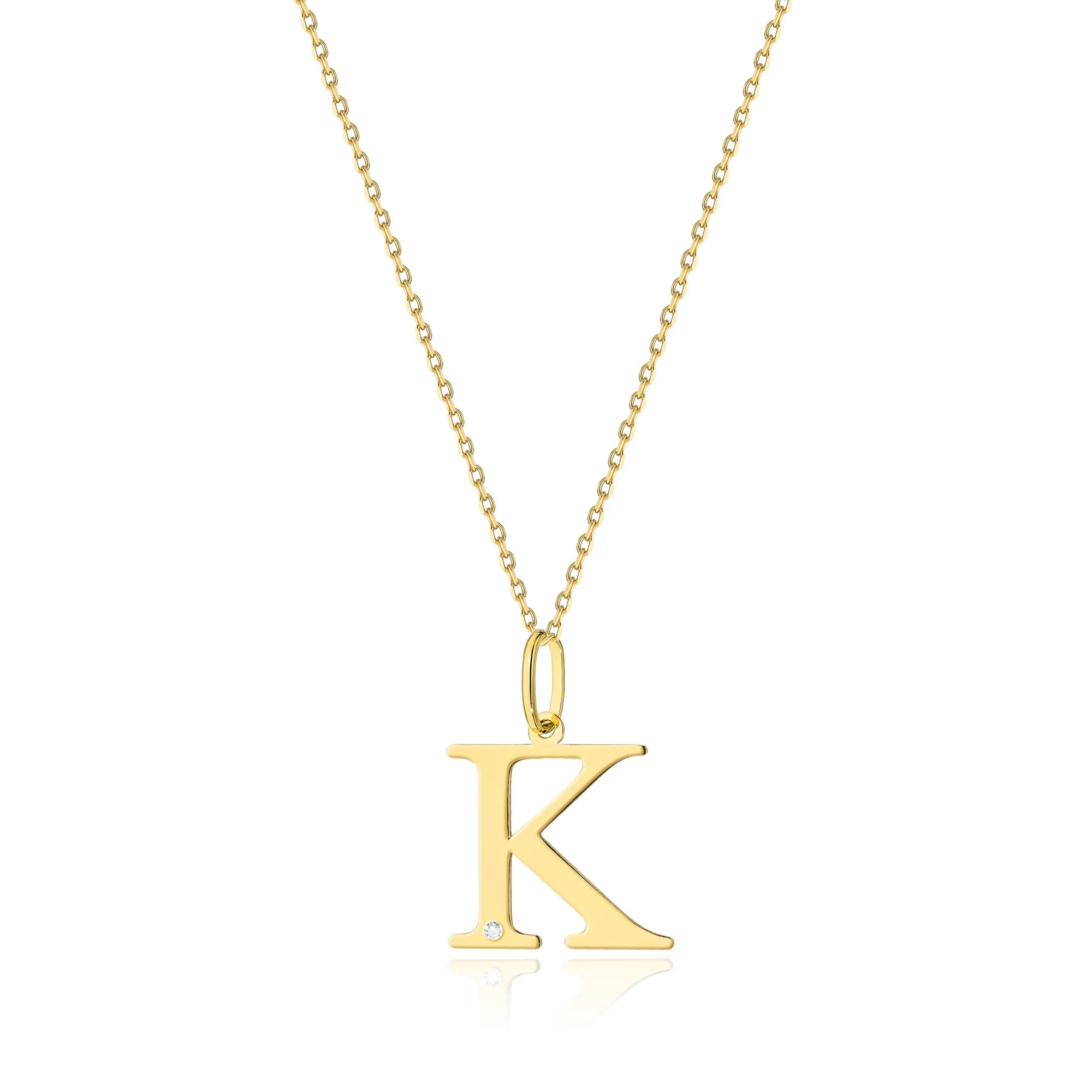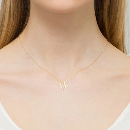 Gold Necklace with 0.005ct Diamond Letter Initials A-Z