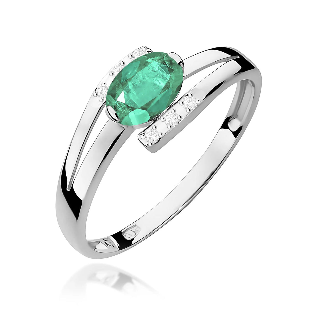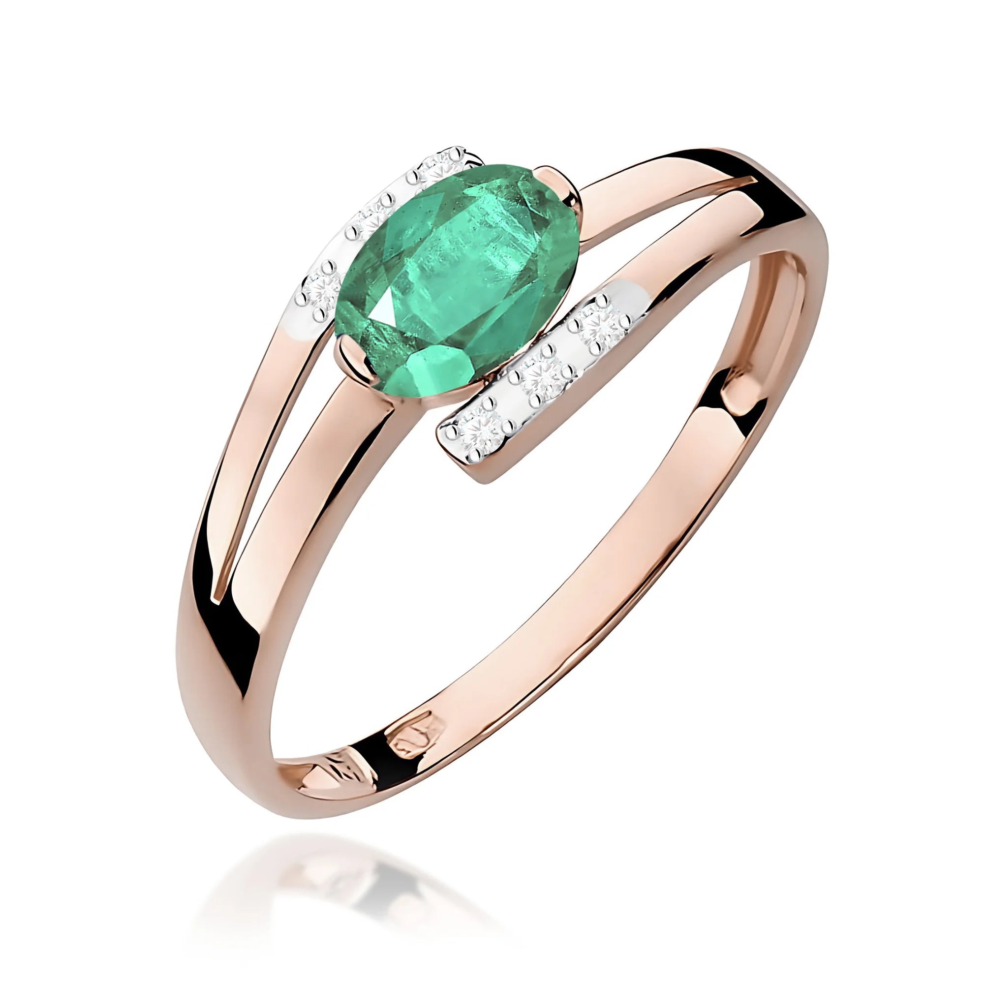Gold Ring with Emerald and 0.052ct Diamonds