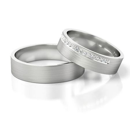 Minimalist White Gold Wedding Bands Rings with Zirconia