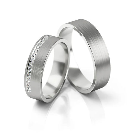Handcrafted in the Gremari jewelry workshop, unique classic wedding rings made of 14K (585) white gold, are a timeless symbol of everlasting love. The ring, 5mm wide and  1,4mm thick, looks beautiful on the hand, is subtle, and goes perfectly with other jewelry pieces, such as bracelets or rings with precious stones, or an engagement ring.