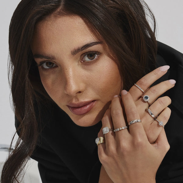 Pavé je štýl osadenia, pri ktorom sú drobné diamanty umiestnené tesne vedľa seba a vytvárajú súvislú plochu svetla. Výsledkom je prsteň, ktorý pôsobí, akoby bol celý rozžiarený.
