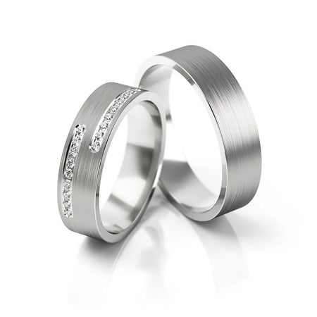 Ručne vyrobené v šperkovnici Gremari, jedinečné klasické svadobné obrúčky z 14K (585) bieleho zlata sú nadčasovým symbolom večnej lásky. Prsteň, široký 5 mm a hrubý 1,4 mm, vyzerá na ruke krásne, je nenápadný a dokonale ladí s inými šperkami, ako sú náramky alebo prstene s drahými kameňmi, či zásnubný prsteň.