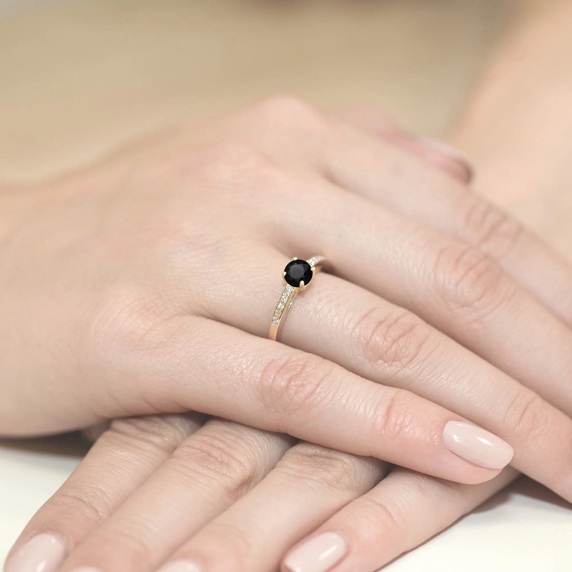 Zlatý prsteň s 0,50 ct čiernym diamantom a 0,05 ct diamantmi