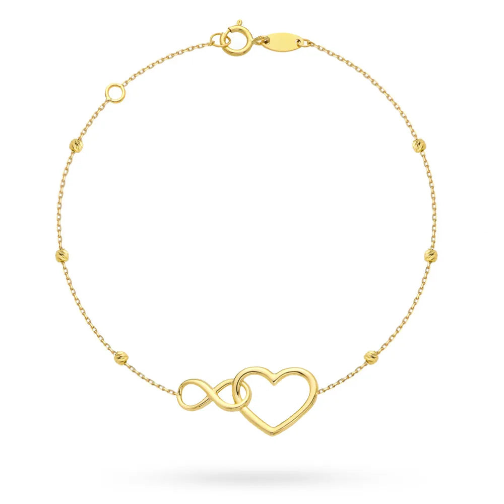Zlatý náramok so srdcom a nekonečnom