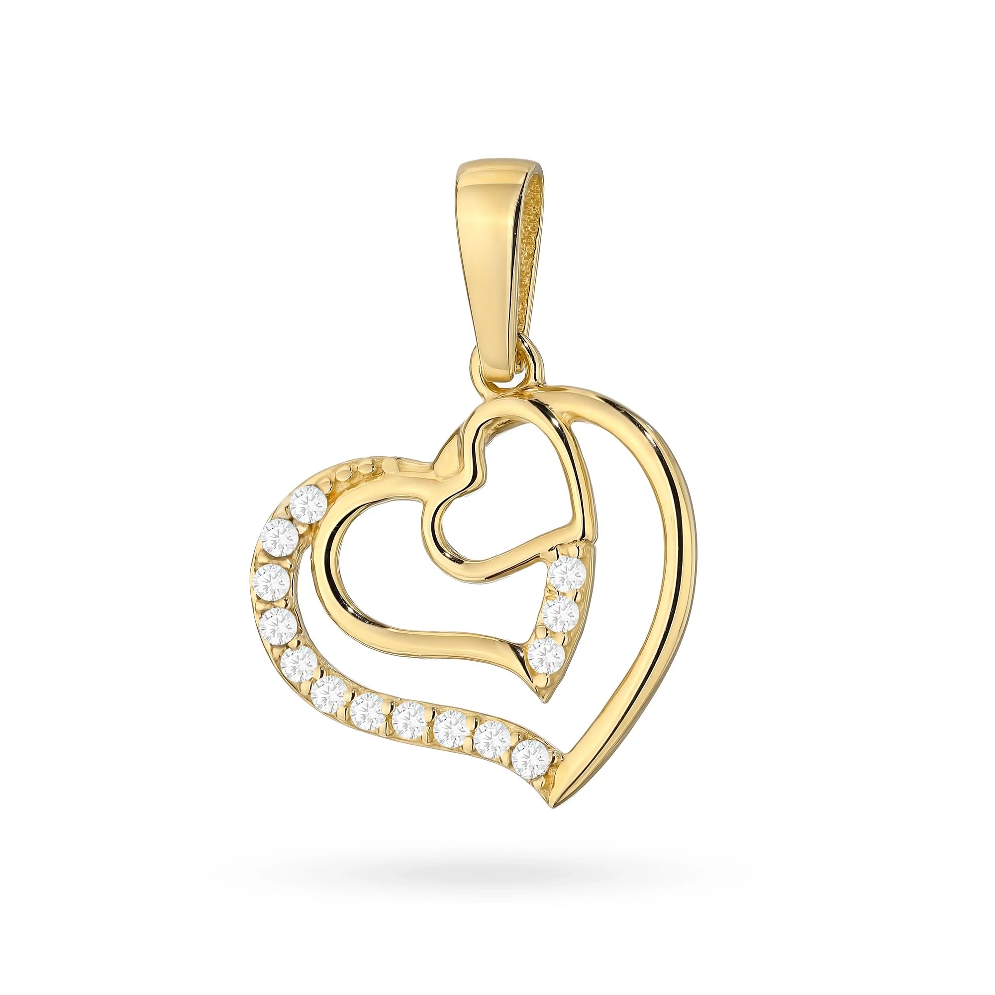 Zlatý náhrdelník s príveskom srdce v srdci a kubickou zirkóniou