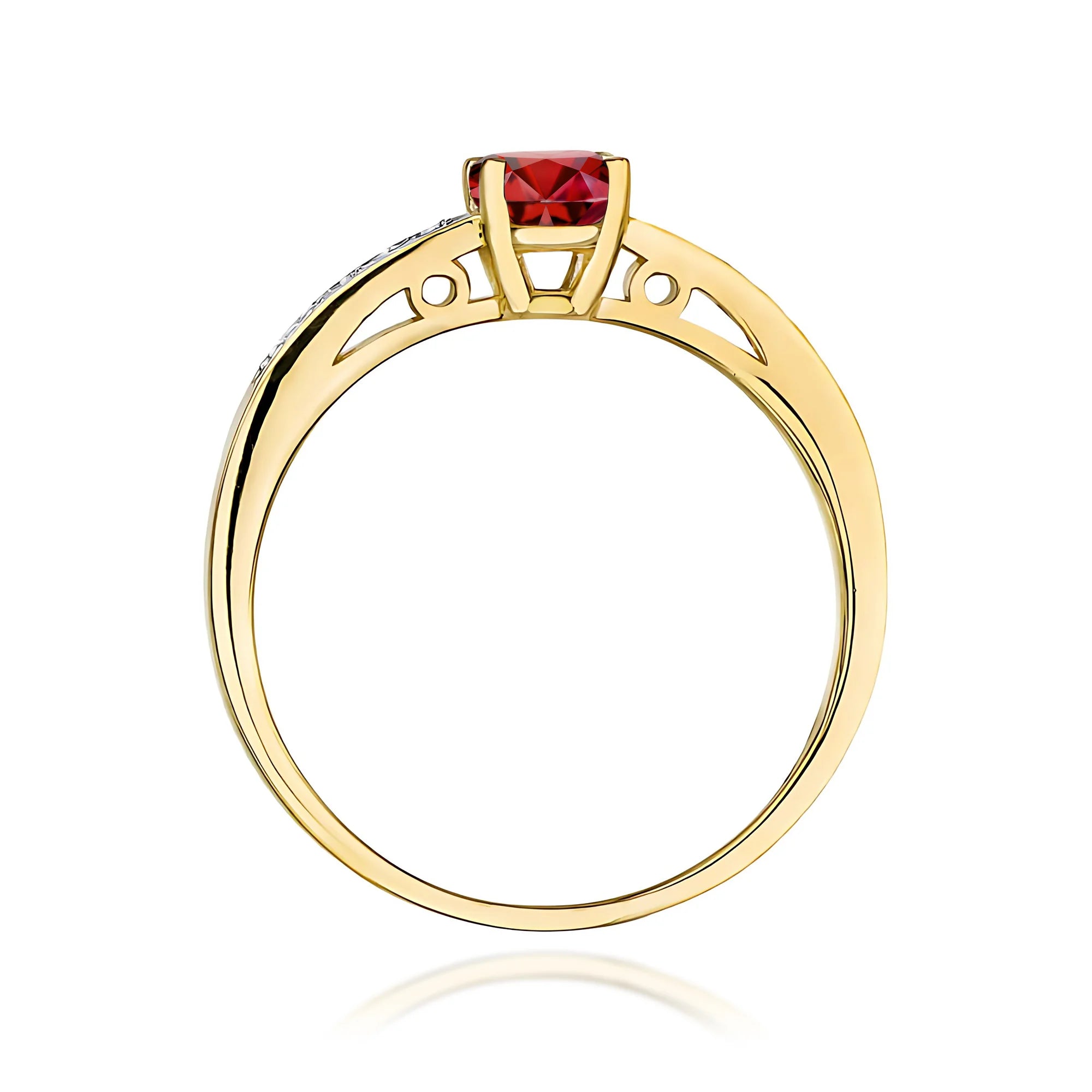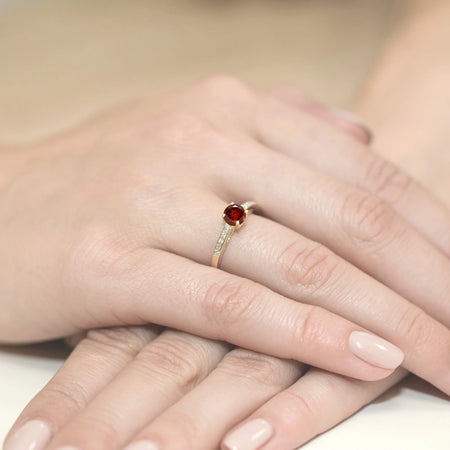 Zlatý prsteň s 0,60 ct granátom a 0,05 ct diamantmi