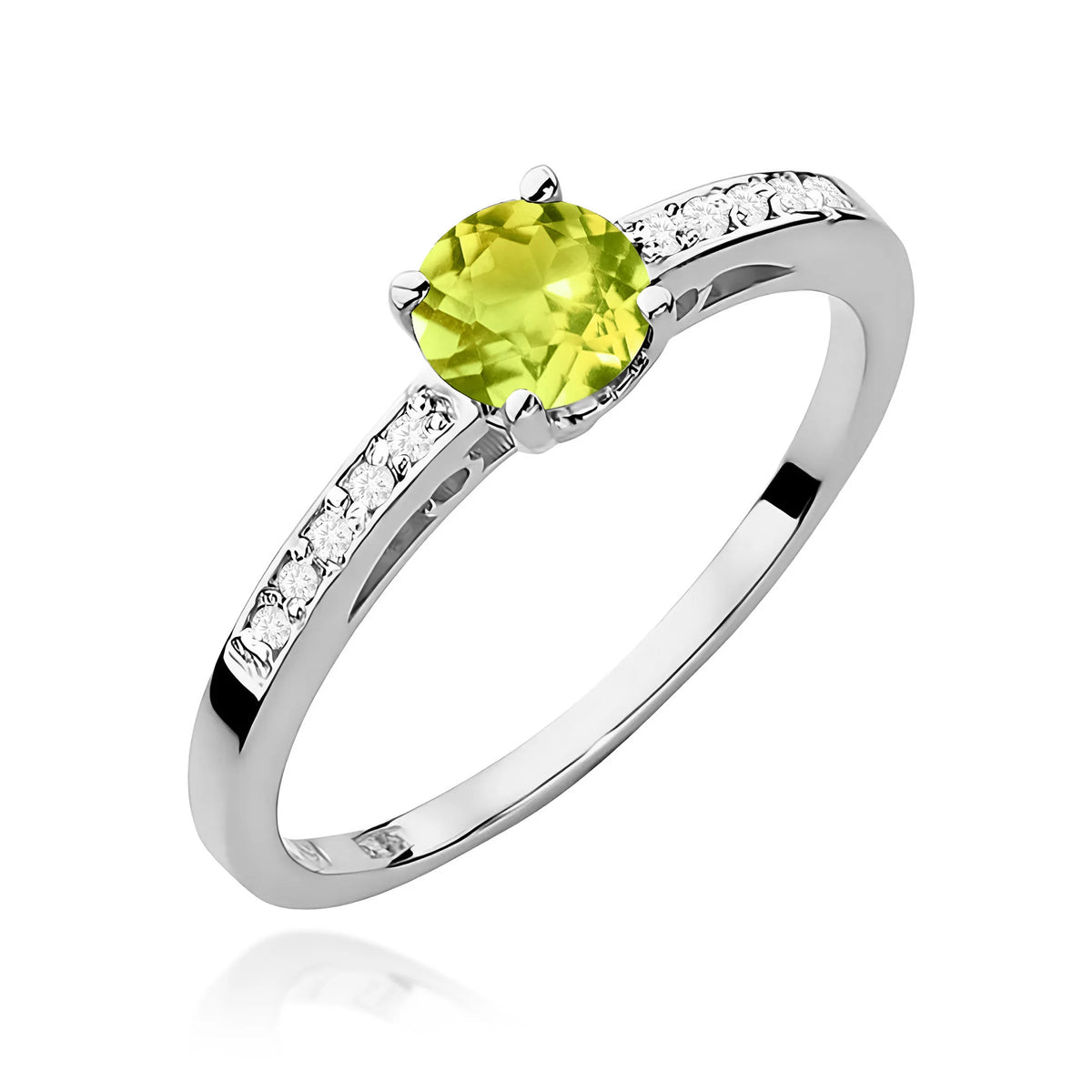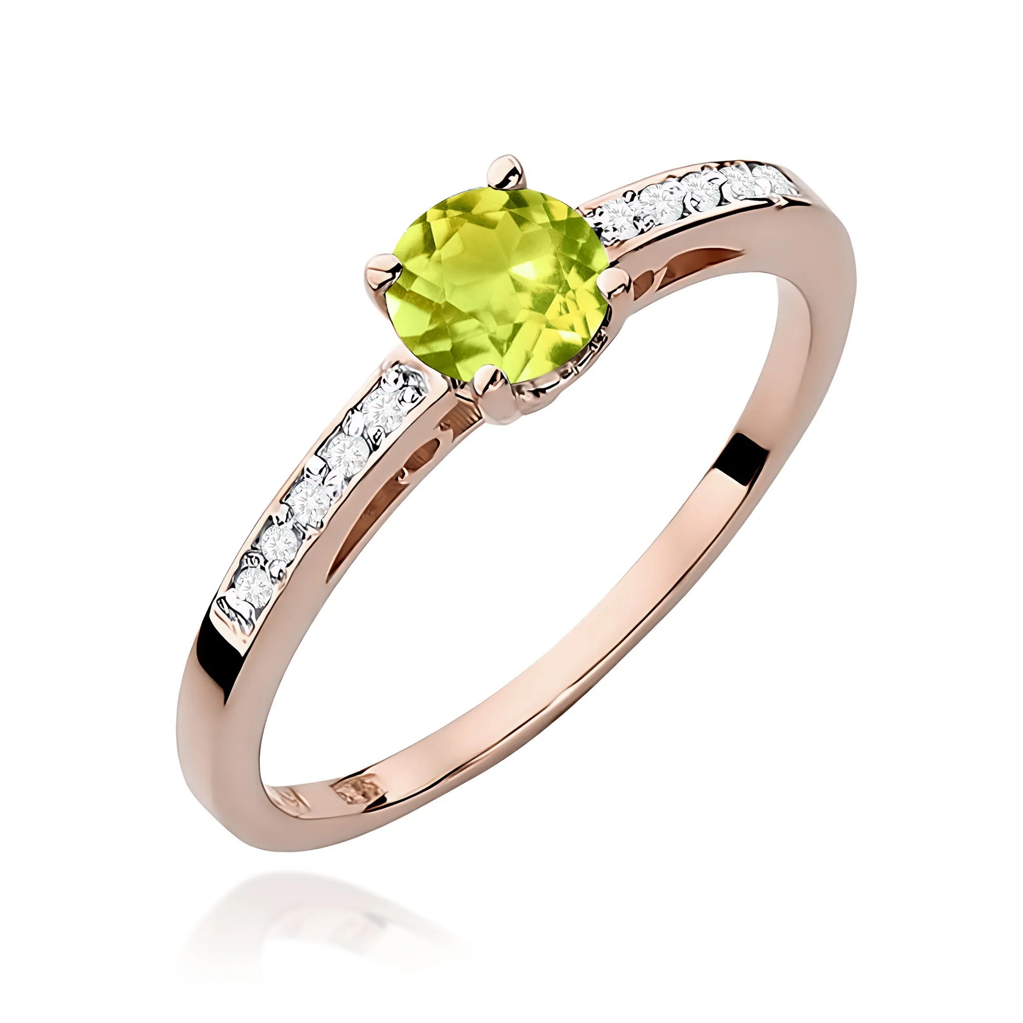 Zlatý prsteň s olivínom a diamantmi 0,05 ct