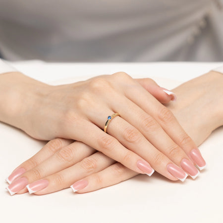 Prsten z 8K zlata s tmavě modrou zirkonií