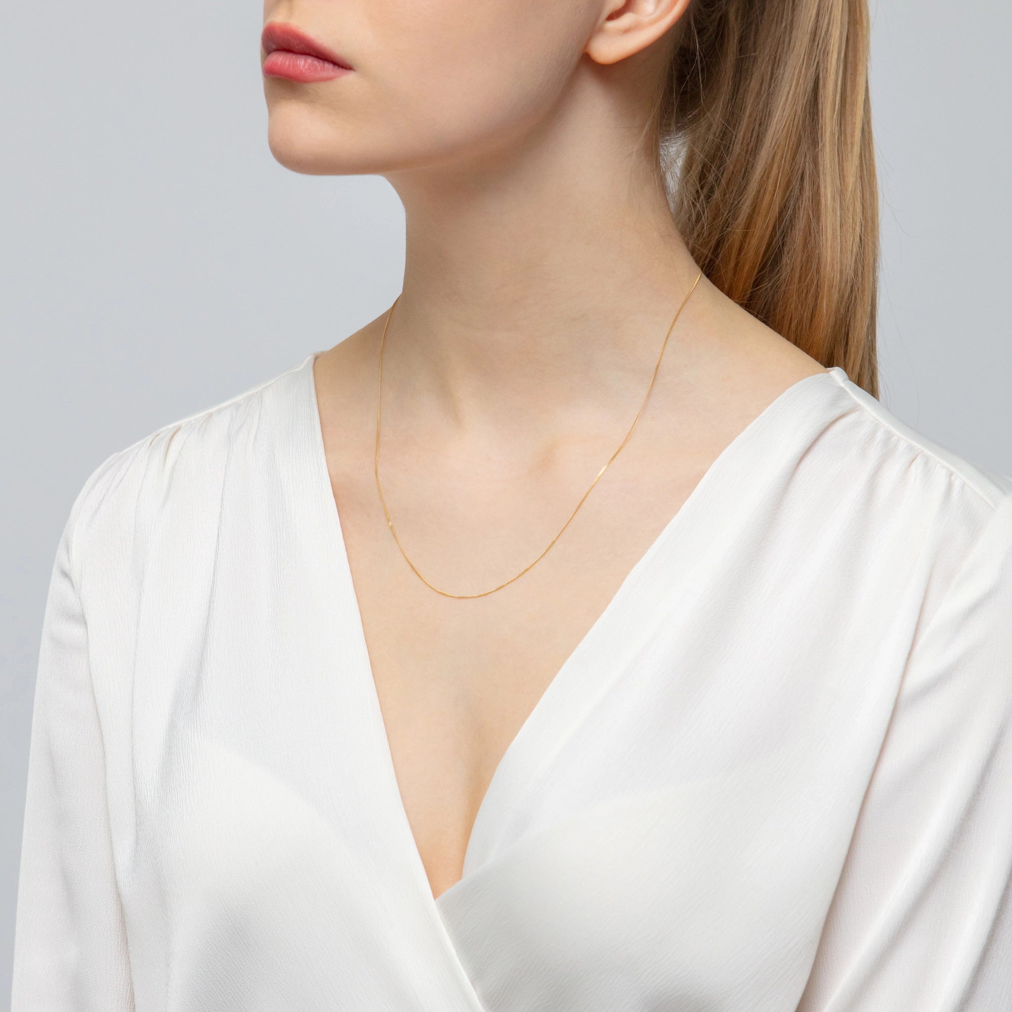Pancrový řetízek z 14K (585) zlata 0,8 mmRuční výroba v tradiční dílně šperků Gremari, tento 14K (585) zlatý pancrový řetízek je elegantním doplňkem ke všem typům outfitů. Řetízek je speciální kousek šperku, oblíbený jak u žen, tak u mužů. Spolu s jakýmkoli zlatým přívěskem Gremari tvoří dokonalý dárek pro vaši milovanou osobu. 585 zlato zaručuje nejvyšší kvalitu a ušlechtilý lesk, který vydrží roky. Tato slitina, obsahující až 58,5 % ryzího zlata, je dokonale vyvážená, aby zajistila, že šperk je výjimečně tvrdý, odolný a odolný vůči každodennímu opotřebení. Zlaté šperky Gremari jsou baleny v elegantní krabičce, která je ideální jako dárek. Každý šperk je opatřen visačkou s ryzostí, hmotností a symbolem kovu – i když je to dárek na poslední chvíli, máte jistotu!