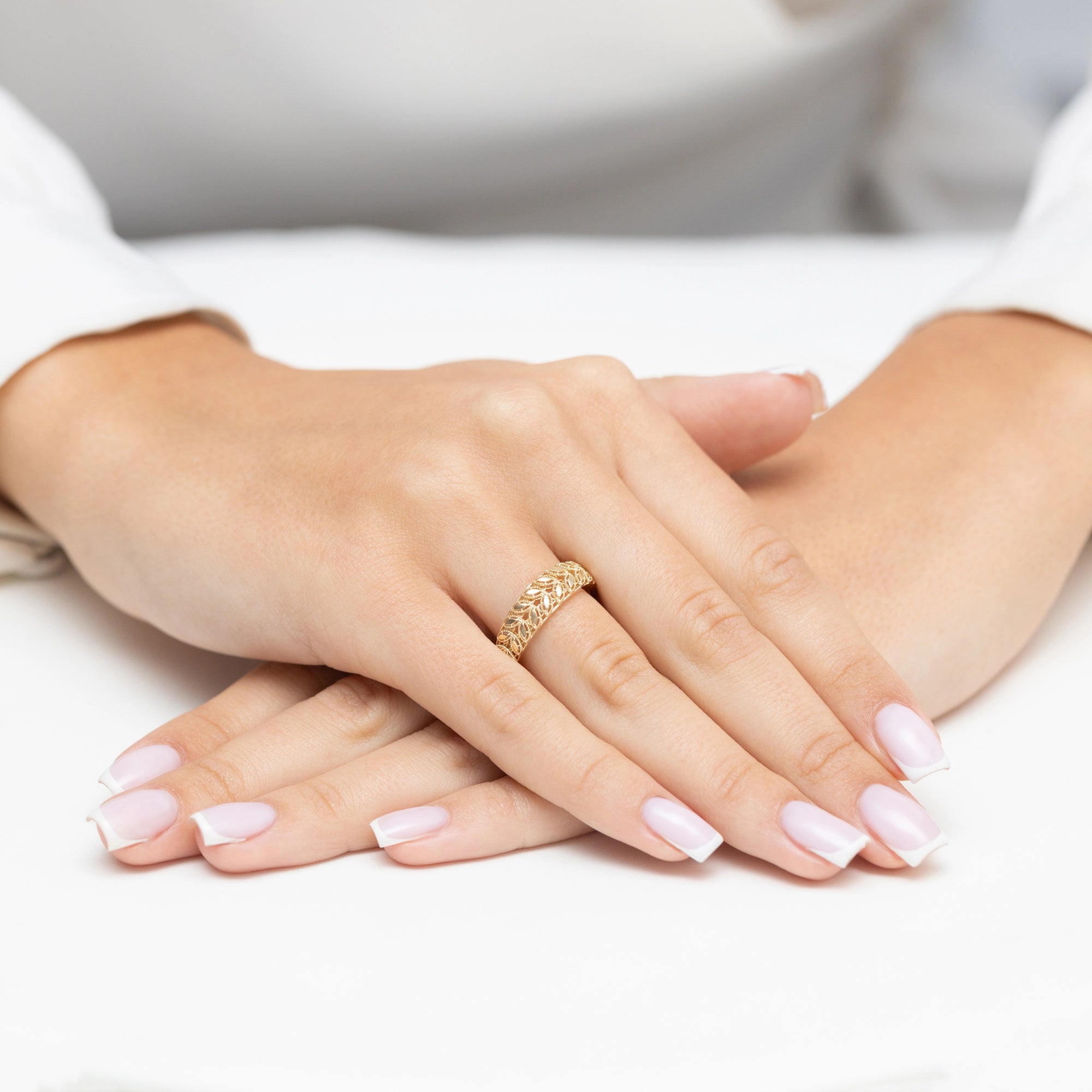 Zlatý prsten Leaves Ručně vyráběný v tradiční šperkařské dílně Gremari, tento zlatý prsten z 14karátového zlata s puncem 585 je okouzlujícím, jemným doplňkem, který zdůrazňuje krásu vašich rukou. Jemný design činí tento zlatý prsten dokonalým doplňkem k dalším šperkům, jako jsou diamantové prsteny a zlaté náramky. Zlatý prsten je podstatou elegance a třídy. Je to univerzální doplněk, který můžete nosit každý den i při zvláštních příležitostech. Vyrobený z nejkvalitnějšího zlata, zaujme svým nadčasovým leskem a odolností. Je to perfektní způsob, jak zdůraznit svůj styl a dodat každému outfitu nádech luxusu. Zlatý prsten Gremari je zabalen v elegantní krabičce, která je ideální jako dárek. Součástí je visačka se šperkařskými údaji o ryzosti, hmotnosti a symbolu kovu – i když je to dárek na poslední chvíli, máte to vyřešené!