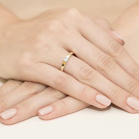 Zlatý prsten s diamantem 0,12 ct Ručně vyrobený v tradiční dílně šperků Gremari, tento zlatý prsten s diamantem 0,12 ct představuje nadčasovou krásu a mistrovství řemesla.