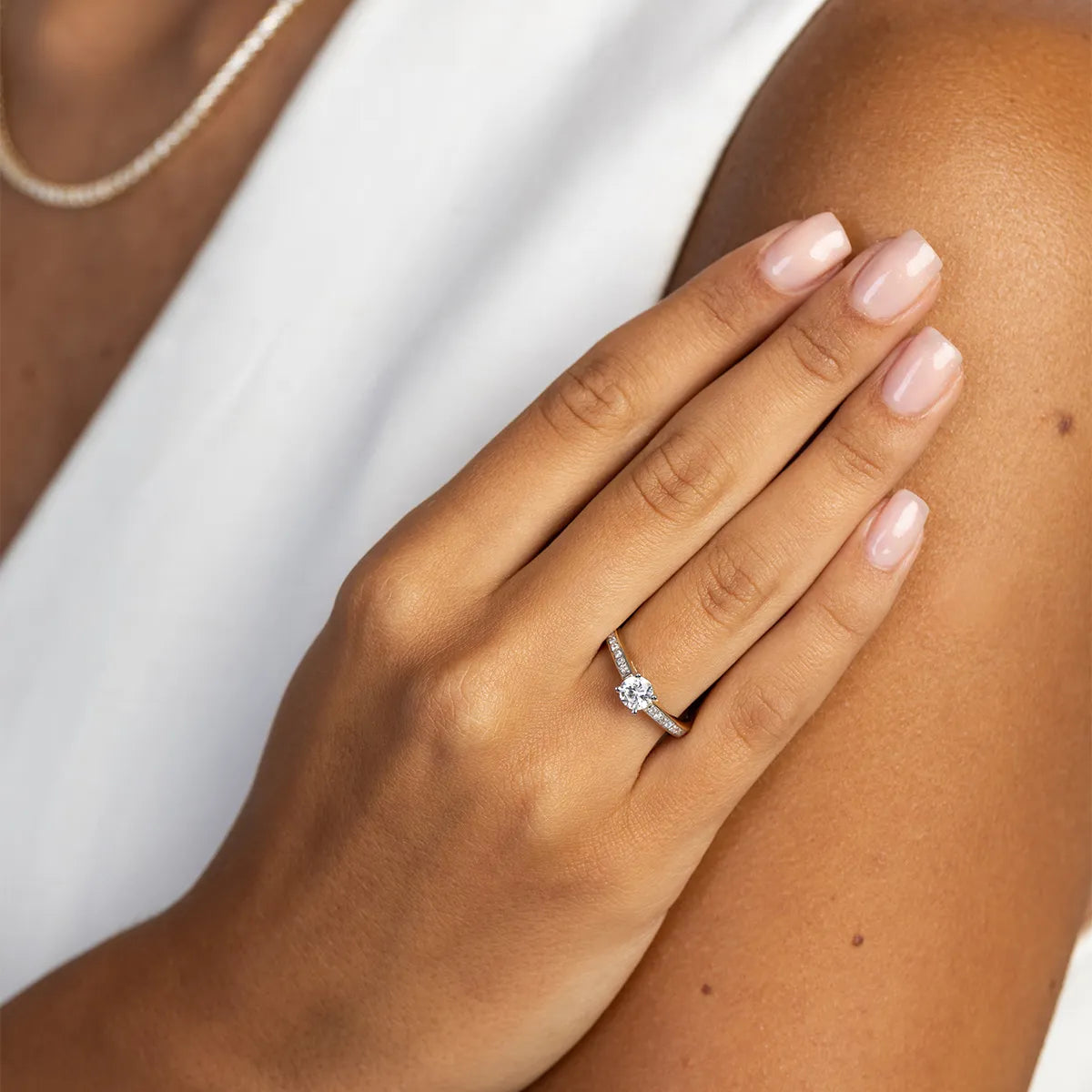 Zlatý prsten s laboratorně pěstovanými diamanty Ručně vyráběný v tradiční dílně šperků Gremari, tento zlatý prsten s 0,50ct laboratorním diamantem a postranními 14 laboratorně pěstovanými diamanty o celkové hmotnosti 0,12ct představuje nadčasovou krásu a mistrovské řemeslo. Laboratorně pěstované diamanty jsou vytvářeny v přesně kontrolovaných podmínkách, které věrně napodobují přirozený proces tvorby diamantů hluboko v Zemi. Jsou to skutečné, čisté krystaly uhlíku se stejnou strukturou jako ty, které vznikají miliony let. Tyto diamanty mají identické optické a chemické vlastnosti, protože jsou vyrobeny ze stejného materiálu. Rozdíl? Jsou vytvořeny rychleji, bez nutnosti těžby a s ohledem na budoucnost naší planety. Osazeno v 14K zlatě s puncem 585, drahokamy kombinují eleganci, jemnost a odolnost. Prsten je dostupný ve třech barevných variantách: žluté zlato, bílé zlato a růžové zlato – jednoduše si vyberte preferovanou variantu výše. Zlatý prsten je ideální volbou pro zásnuby, symbolizující lásku, oddanost a věčné pouto. Také je to nádherný a elegantní dárek k výročí, narozeninám, Vánocům a dalším významným příležitostem.