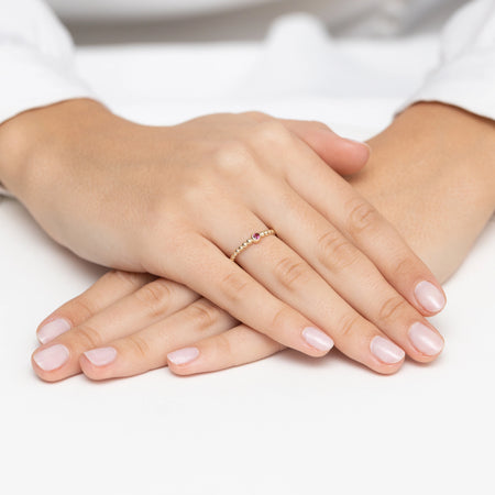 Zlatý prsten s červenými zirkoniovými korálky