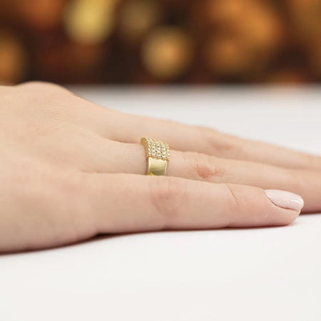 Sada zlatých prstenů se zirkony Ručně vyrobená v tradiční dílně šperků Gremari, tato sada zlatých prstenů z 14karátového zlata s puncem 585 je okouzlujícím, jemným doplňkem, který zdůrazňuje krásu vašich rukou. Jemný design činí tento zlatý prsten dokonalým doplňkem k dalším šperkům, jako jsou diamantové prsteny a zlaté náramky. Zlatý prsten je podstatou elegance a třídy. Je to univerzální doplněk, který můžete nosit každý den i při zvláštních příležitostech. Vyrobený z nejkvalitnějšího zlata, ohromuje svým nadčasovým leskem a odolností. Je to dokonalý způsob, jak zdůraznit svůj styl a dodat každému outfitu nádech luxusu. Zirkony jsou vytvořeny v laboratorních podmínkách a jejich vysoká tvrdost a vynikající optické vlastnosti je řadí mezi nejlepší dostupné imitace diamantů na trhu se šperky. Jejich mimořádná schopnost lámat světlo způsobuje, že se při každém pohybu nádherně třpytí. Zlatý prsten Gremari je zabalen v elegantní krabičce, která je ideální jako dárek. Součástí je visačka se šperkařskými údaji o ryzosti, hmotnosti a symbolu kovu – i když je to dárek na poslední chvíli, máte to vyřešené!