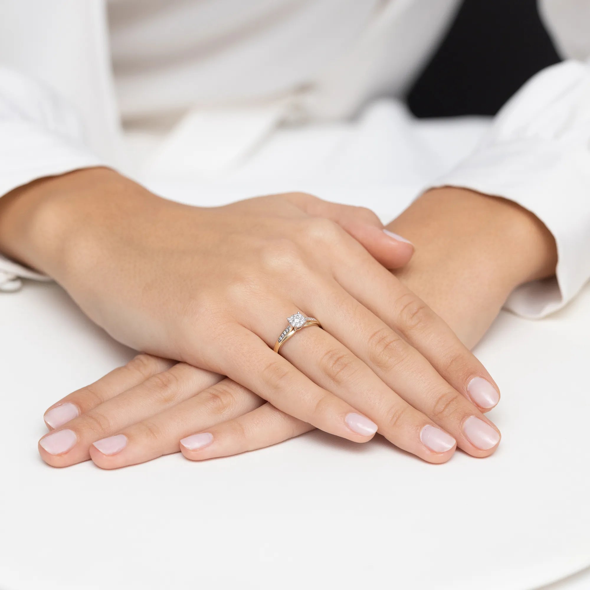 Goldring mit 0,08 ct Diamant und 0,118 ct Seitensteinen
