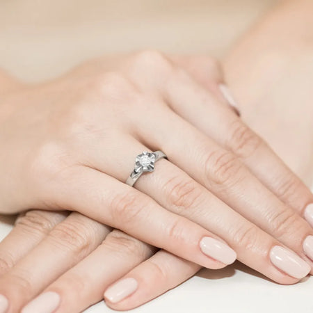 Handgefertigt in der traditionellen Gremari-Schmuckwerkstatt, verkörpert dieser Verlobungsring aus Gold mit einem 0,23 ct Brillantschliff-Diamanten zeitlose Schönheit und handwerkliche Meisterschaft. Die Krone hält einen natürlichen Diamanten, einen Stein, der sich über Millionen von Jahren tief in der Erde gebildet hat und eine ewige Liebe symbolisiert, die allem standhält.