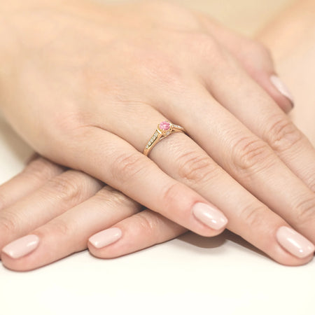 Goldring mit 0,30 ct Pinktopas und 0,103 ct Diamanten