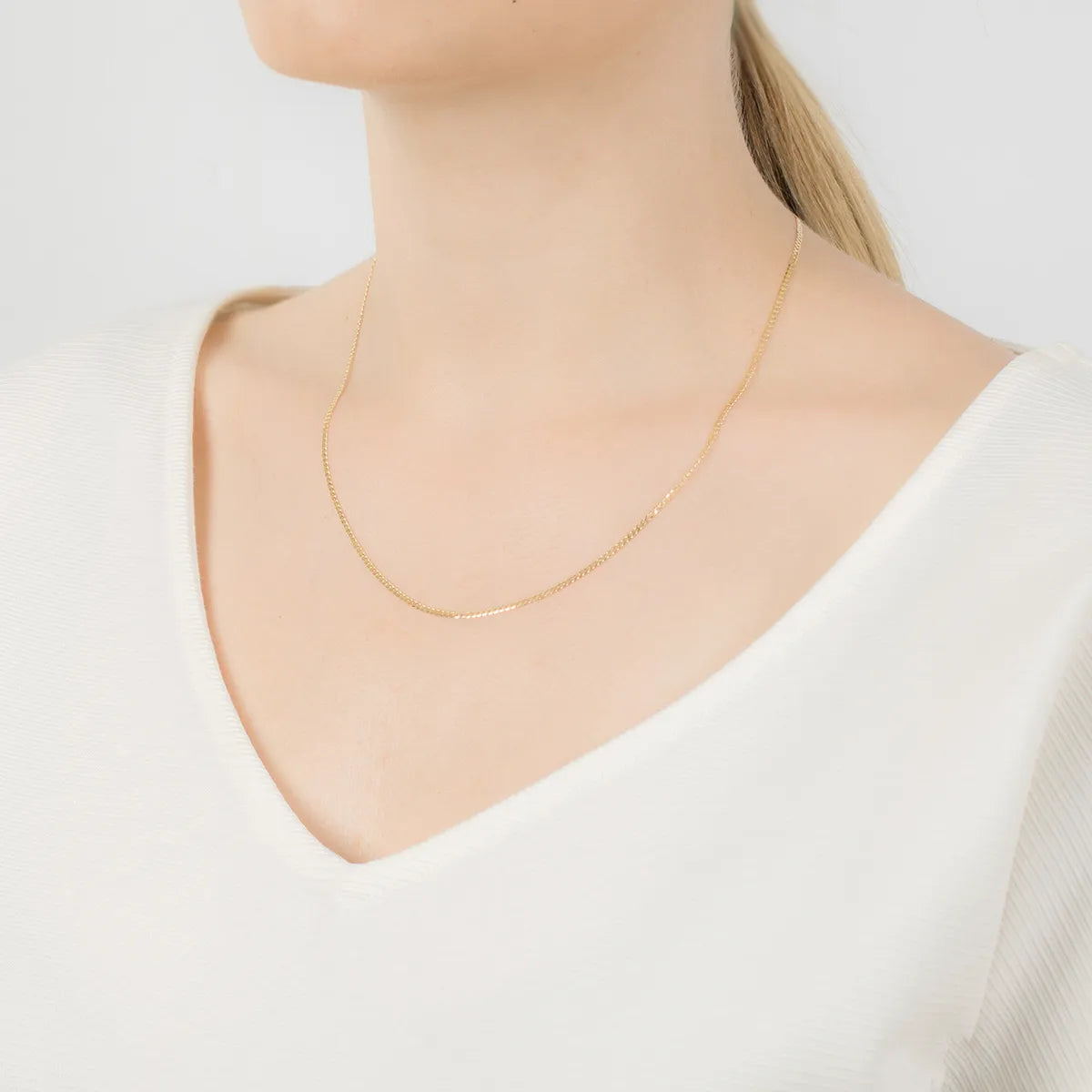 Gold Curb Chain 0.9mmHandmade in the traditional Gremari jewellery workshop, this 8K (333) gold curb chainis an elegant accessory for all types of outfits. A chain is a special piece of jewelry, loved both by women and men. Along with any Gremari gold pendant, it makes the perfect gift for your loved one.333 gold jewelry combines a beautiful, noble appearance with exceptional durability. This alloy, containing 33.3% pure gold, is known for having the highest hardness among popular finenesses. Thanks to this property, rings, earrings, and necklaces retain their original shape and are extremely resistant to mechanical damage and abrasion. Gremari gold jewelry is packaged in an elegant box, which is perfect for giving as a gift. Each piece jewellery comes with a tag showing the fineness, weight, and symbol of the metal €” even if it's a last-minute gift, you're covered!
