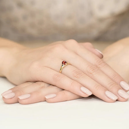Gold Ring with 0.60ct Garnet and Black Diamonds