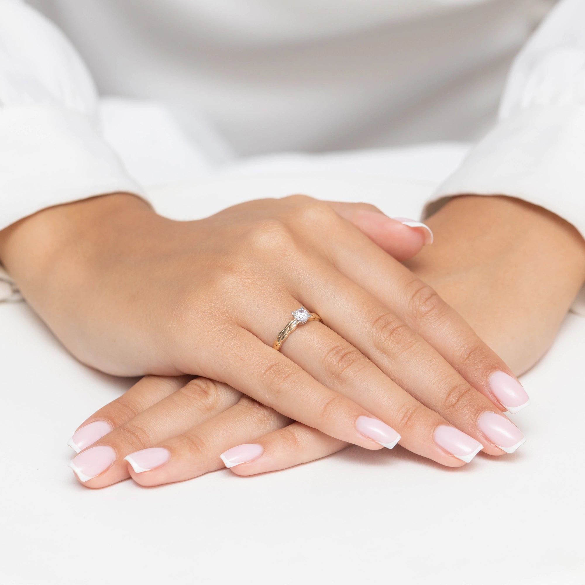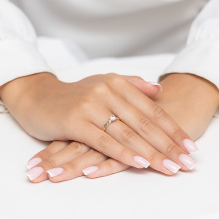 Gold Ring with Zirconia Handcrafted in the traditional Gremari jewelry workshop, this gold ring set in 14K gold with a 585 hallmark is a charming, delicate accessory that emphasises the beauty of your hands. The subtle design makes this gold ring a perfect match for other jewellery, such as diamond rings and gold bracelets. A gold ring is the essence of elegance and class. It is a versatile accessory that you can wear every day and on special occasions. Made of the highest quality gold, it impresses with its timeless shine and durability. It is the perfect way to emphasize your style and add a touch of luxury to any outfit.Zirconia stones are created in laboratory conditions, and their high hardness and excellent optical properties make them one of the best diamond imitations available on the jewellery market. Their extraordinary ability to refract light makes them sparkle spectacularly with every movement. Gremari gold ring is packaged in an elegant box, which is perfect for giving as a gift. It comes with a jewelry tag showing the fineness, weight, and symbol of the metal ” even if it's a last-minute gift, you're covered!