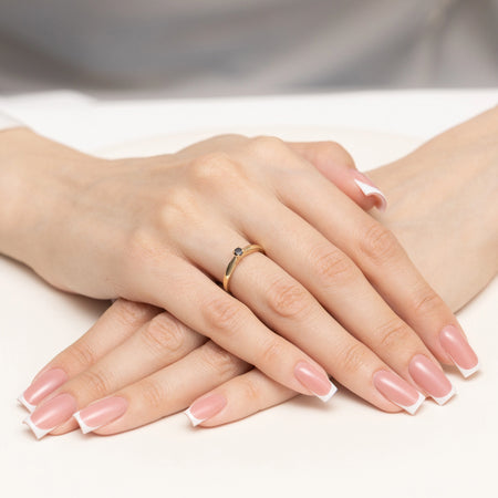 Ručne vyrobený v tradičnej zlatníckej dielni Gremari, tento jedinečný prsteň je vyrobený z 8K (333/1000) zlata zdobený zirkóniou, kombinuje klasickú eleganciu s moderným dizajnom. Zirkónové kamene sú vytvorené v laboratórnych podmienkach a ich vysoká tvrdosť a vynikajúce optické vlastnosti ich radia medzi najlepšie imitácie diamantov dostupné na trhu s bižutériou. Ich mimoriadna schopnosť lámať svetlo spôsobuje, že žiaria nádherne pri každom pohybe ruky.